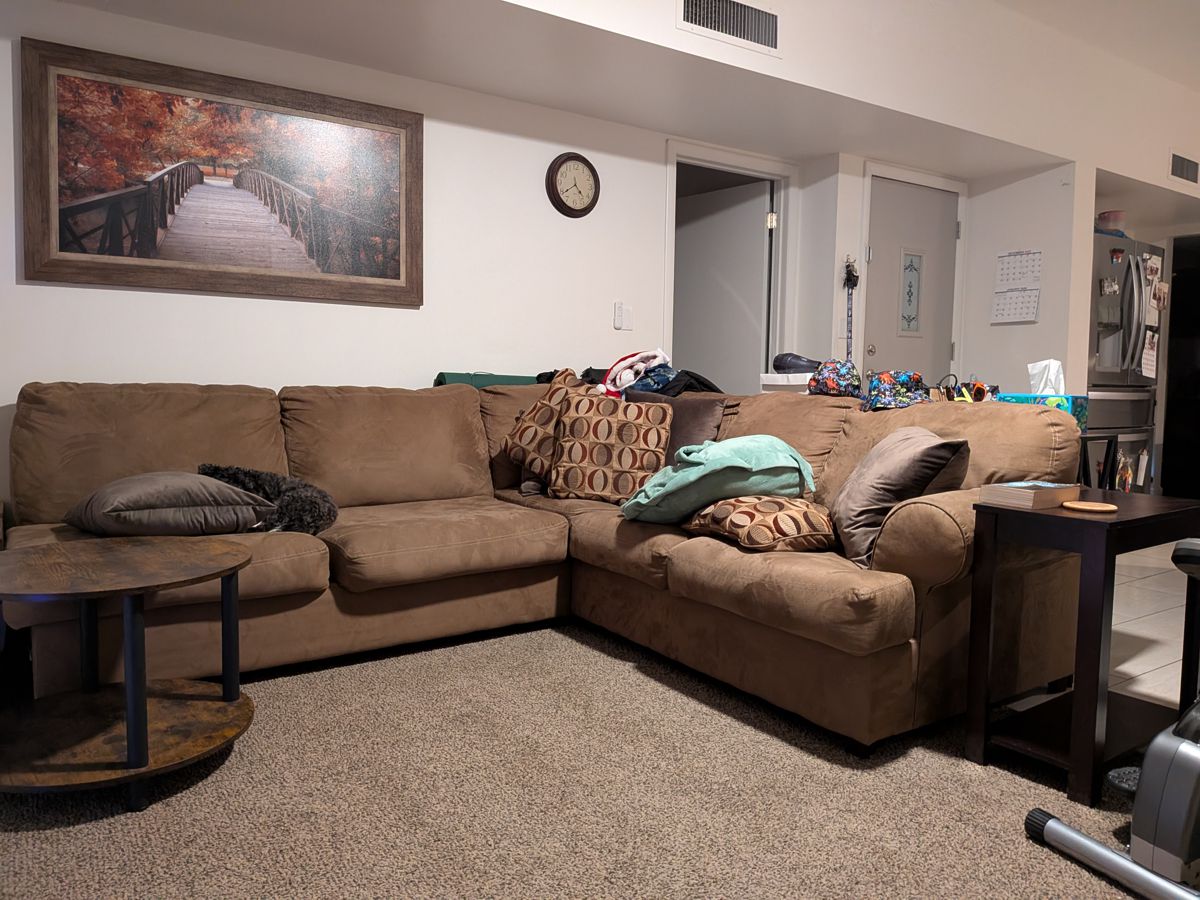 Photo #2: With your back to the fireplace, take a picture looking straight out into the room so we can see the decor directly in front of the fireplace.