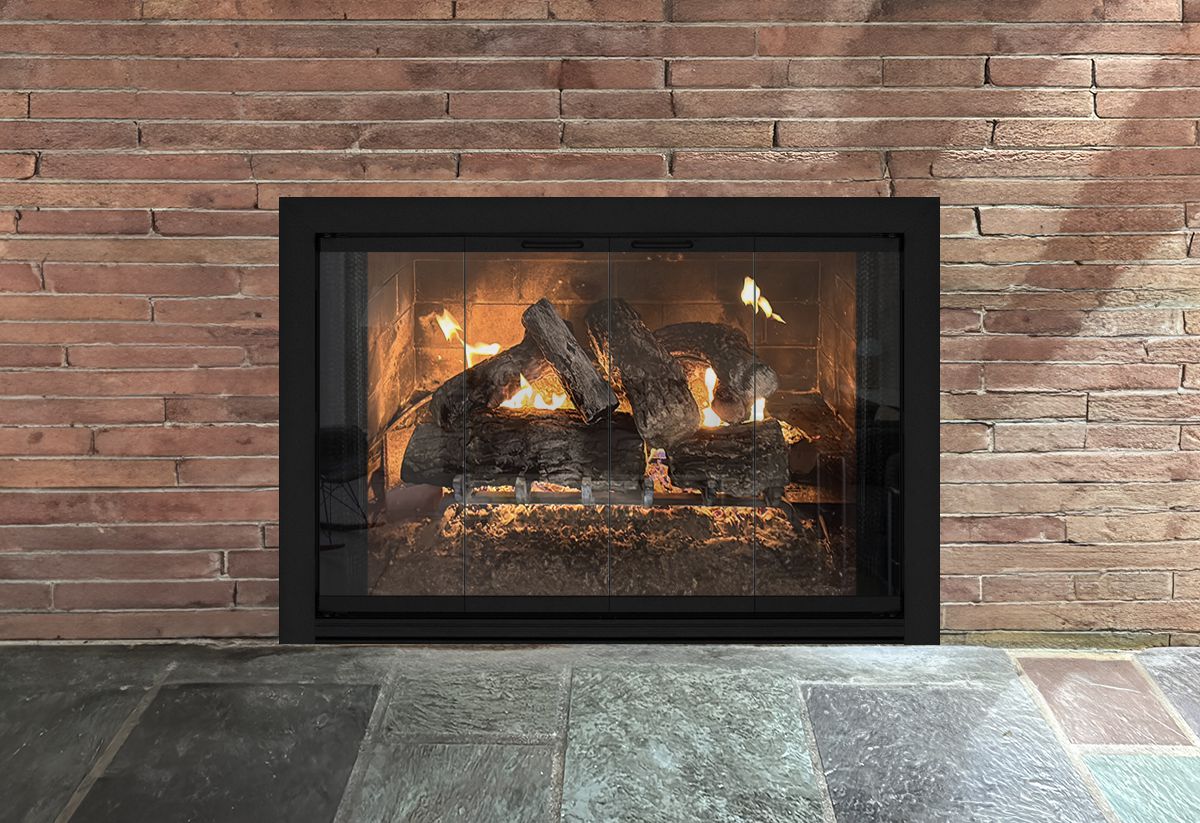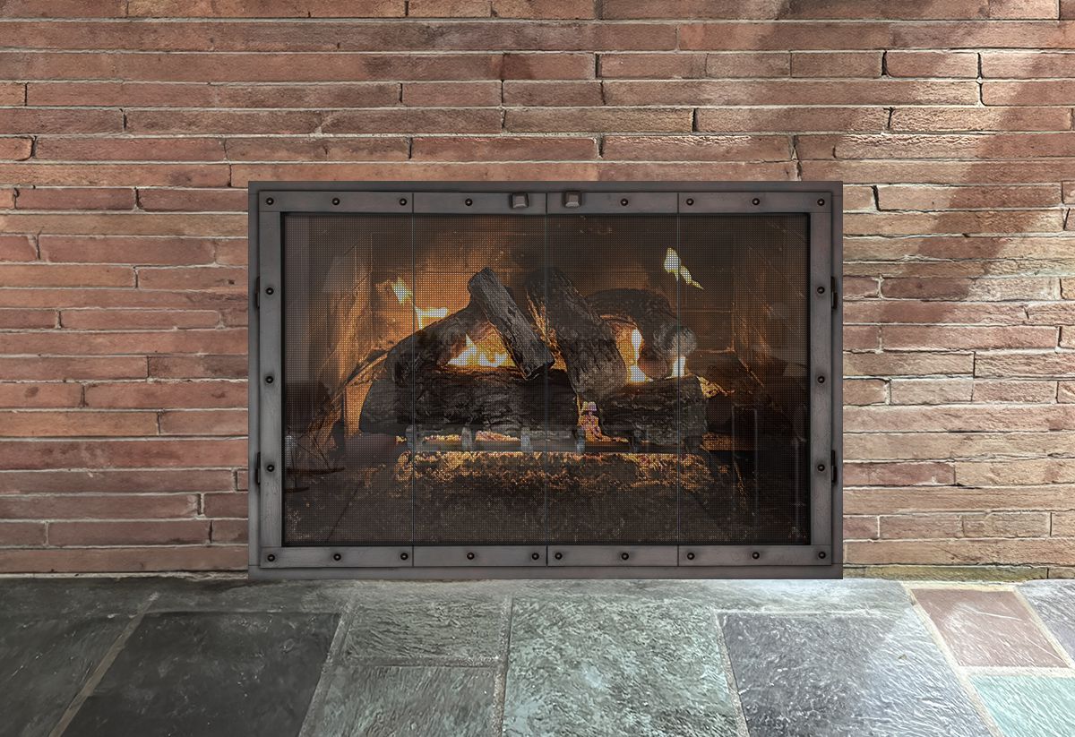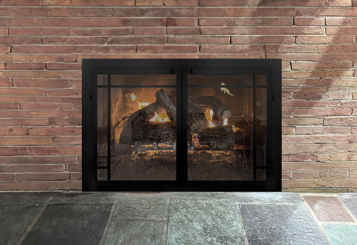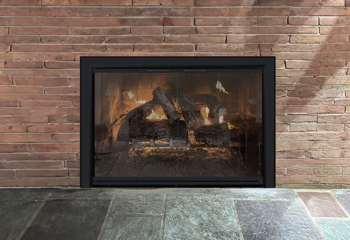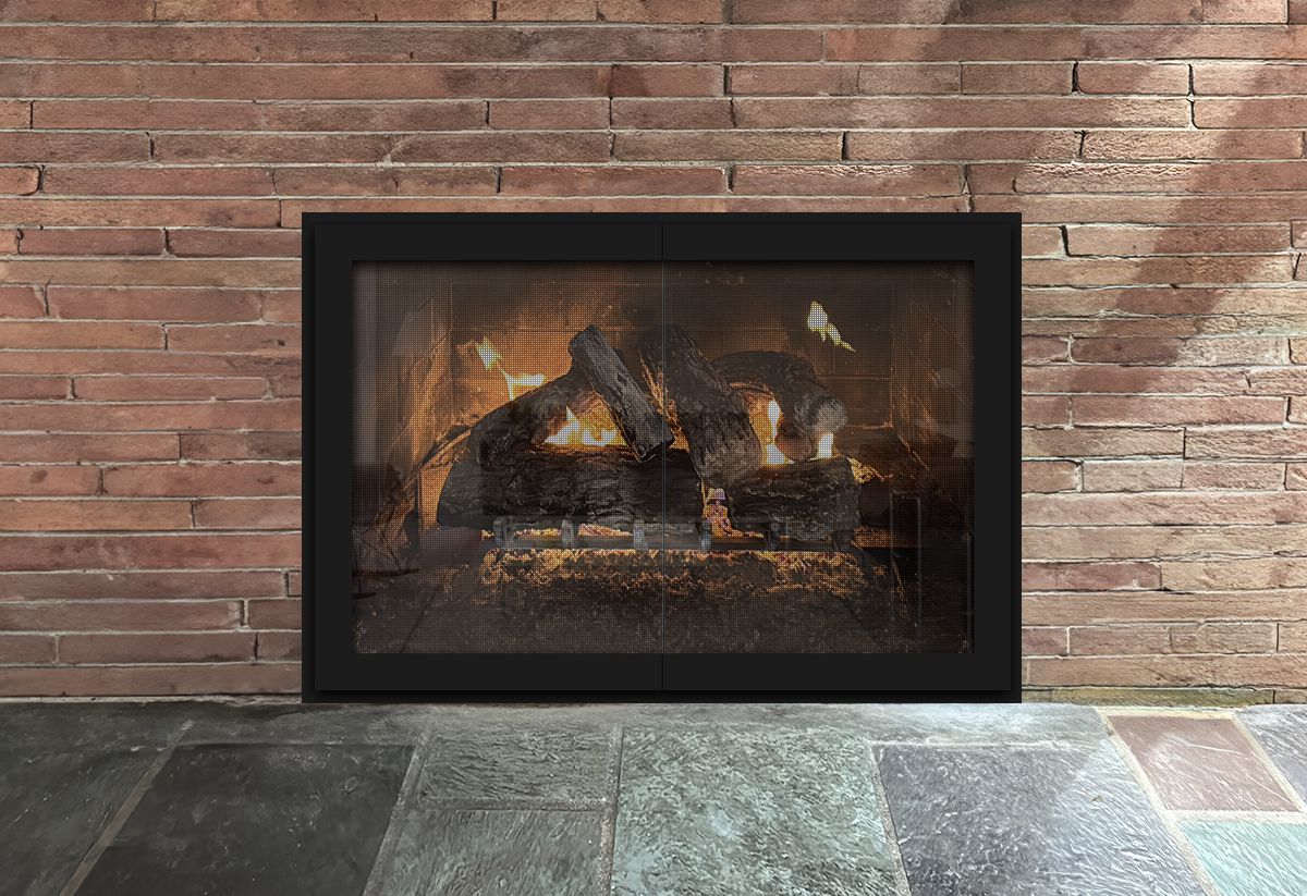 If you are planning on burning anything in your fireplace, you need to have mesh behind the glass so you can burn a fire with the doors open. You can chooe between gate mesh backup doors and sliding mesh curtains. Functionally, gate mesh performs the best as the wire has smaller holes that sparks cannot get through. Aesthetically, mesh curtains may be preferred because they do not have a vertical center frame that obstructs the view of the fire. When you are not using the fire or you want a complete unobstructed view, they do not stick out like gate mesh doors when they are opened.
