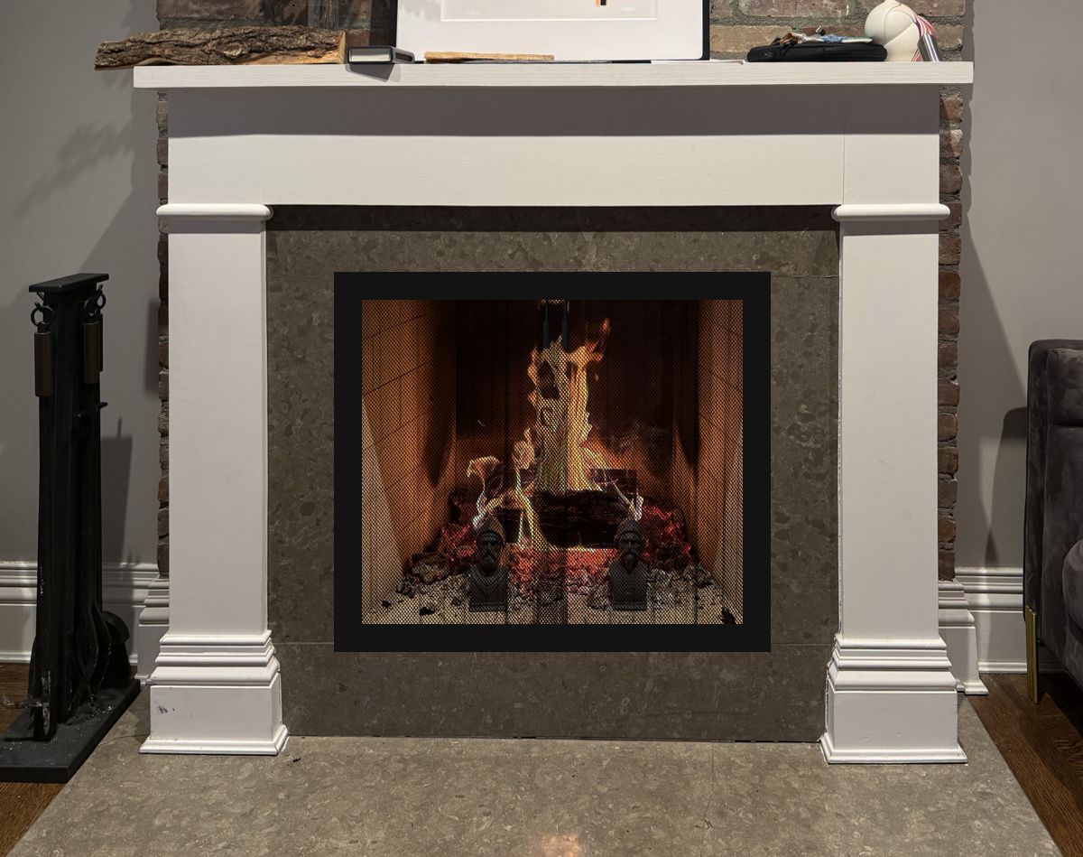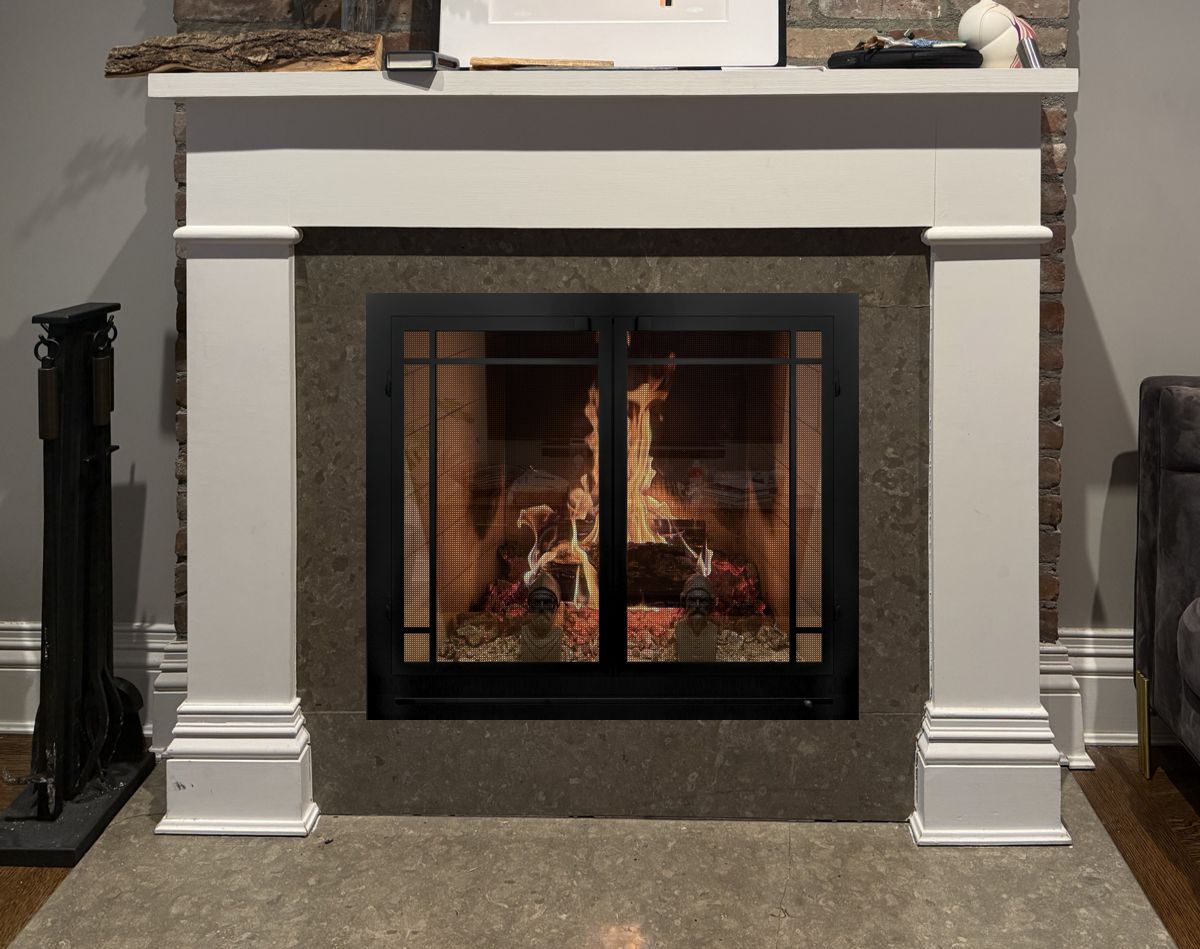 Scale & Finish Disclaimer: Mockups shown on this site are not necessarily to scale and are meant to help you choose the style of your screen or door. The appearance of finishes represented may vary between digital monitors and screens. I do my best to recommend finishes that I believe will blend with your decor and flatter your fireplace. You can view finish options here: