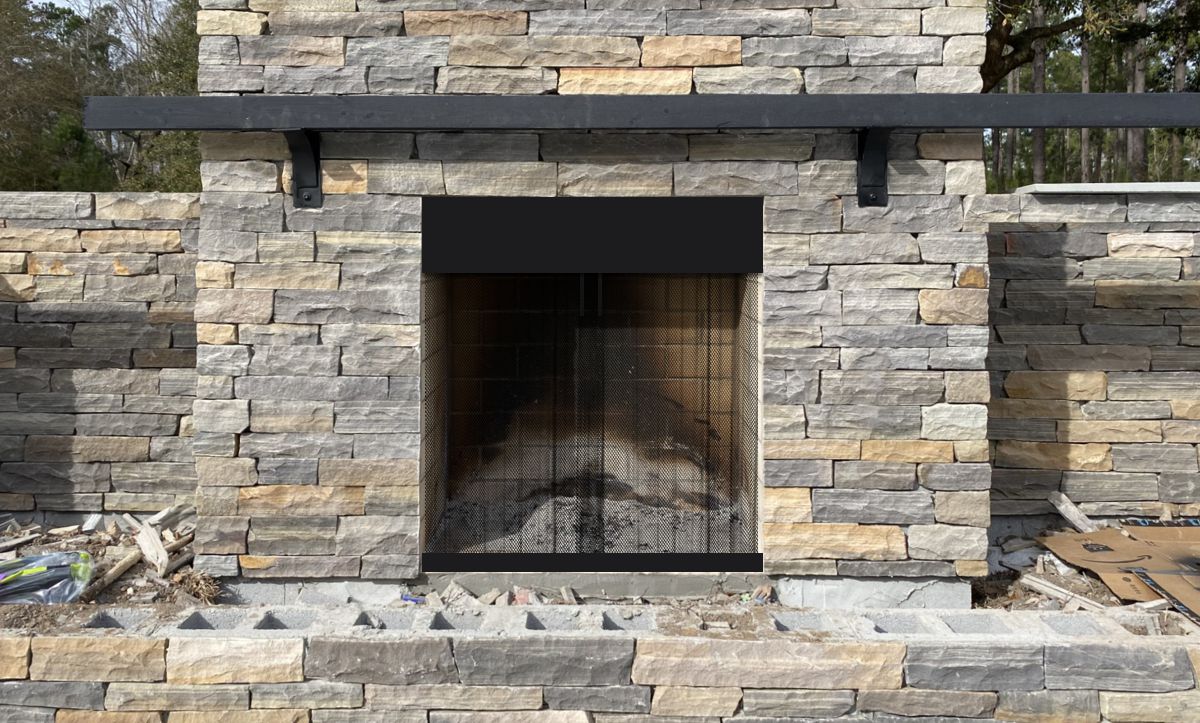 Customer Comments: This is an exterior fireplace so I don't have a decor picture. Just looking for a smoke shield and with the curtains. The opening width is 36". I was thinking about an 6" -8" tall smoke shield.