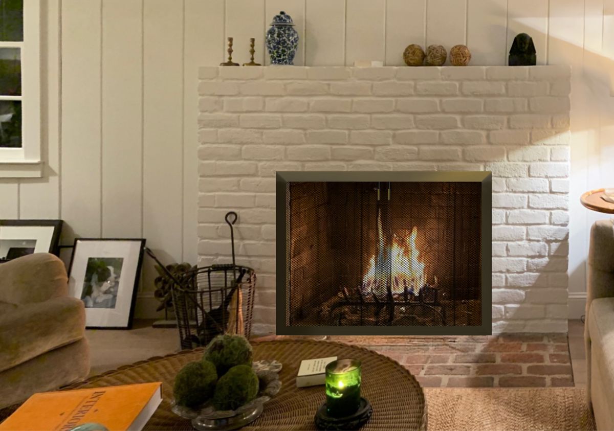 Scale & Finish Disclaimer: Mockups shown on this site are not necessarily to scale and are meant to help you choose the style of your screen or door. The appearance of finishes represented may vary between digital monitors and screens. I do my best to recommend finishes that I believe will blend with your decor and flatter your fireplace. You can view finish options here: