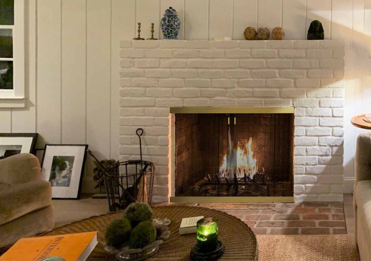 If you are planning on burning anything in your fireplace, you need to have mesh behind the glass so you can burn a fire with the doors open. You can chooe between gate mesh backup doors and sliding mesh curtains. Functionally, gate mesh performs the best as the wire has smaller holes that sparks cannot get through. Aesthetically, mesh curtains may be preferred because they do not have a vertical center frame that obstructs the view of the fire. When you are not using the fire or you want a complete unobstructed view, they do not stick out like gate mesh doors when they are opened.
