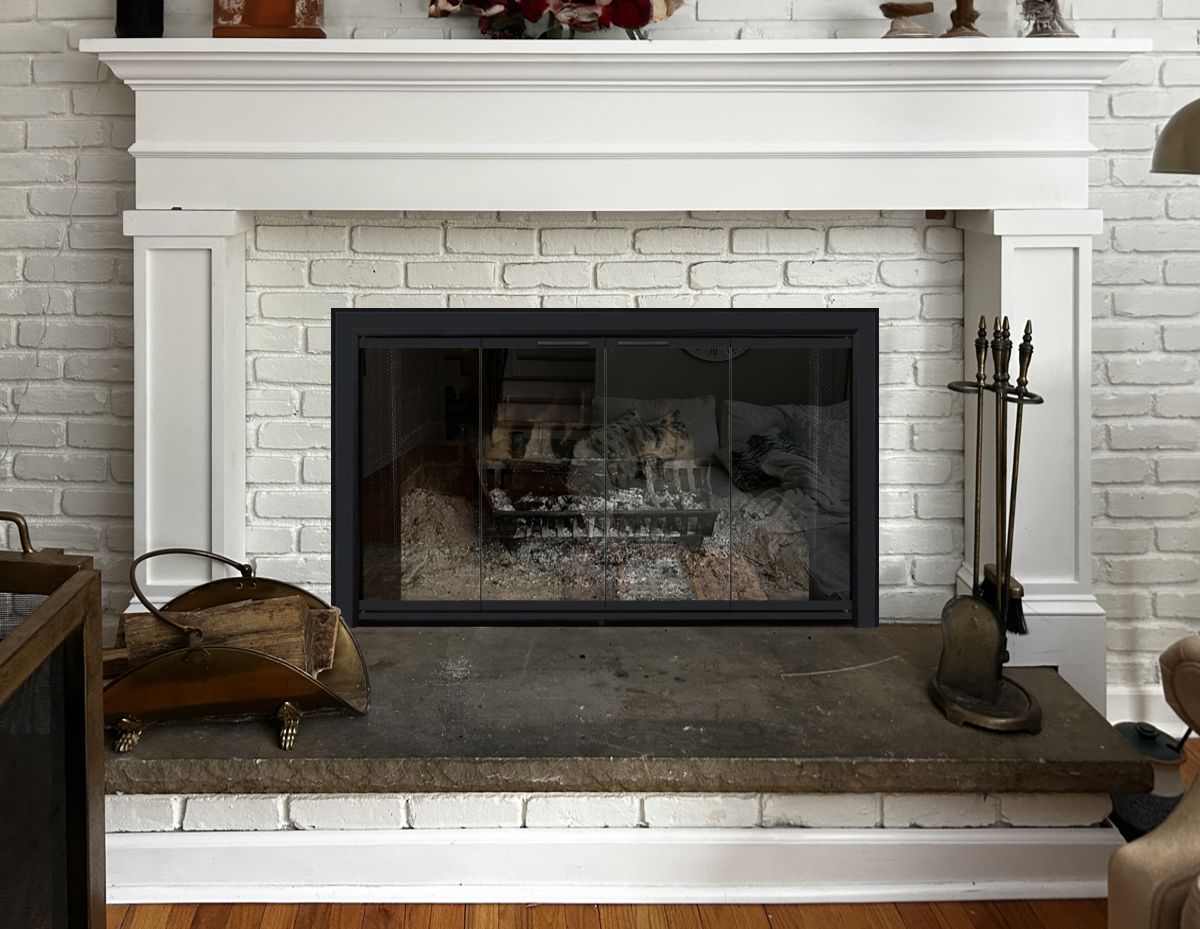 Scale & Finish Disclaimer: Mockups shown on this site are not necessarily to scale and are meant to help you choose the style of your screen or door. The appearance of finishes represented may vary between digital monitors and screens. I do my best to recommend finishes that I believe will blend with your decor and flatter your fireplace. You can view finish options here: