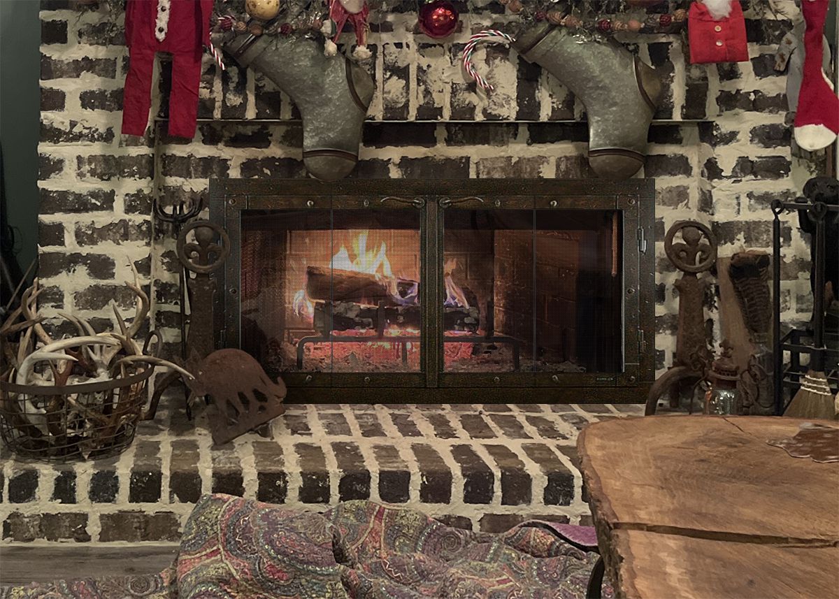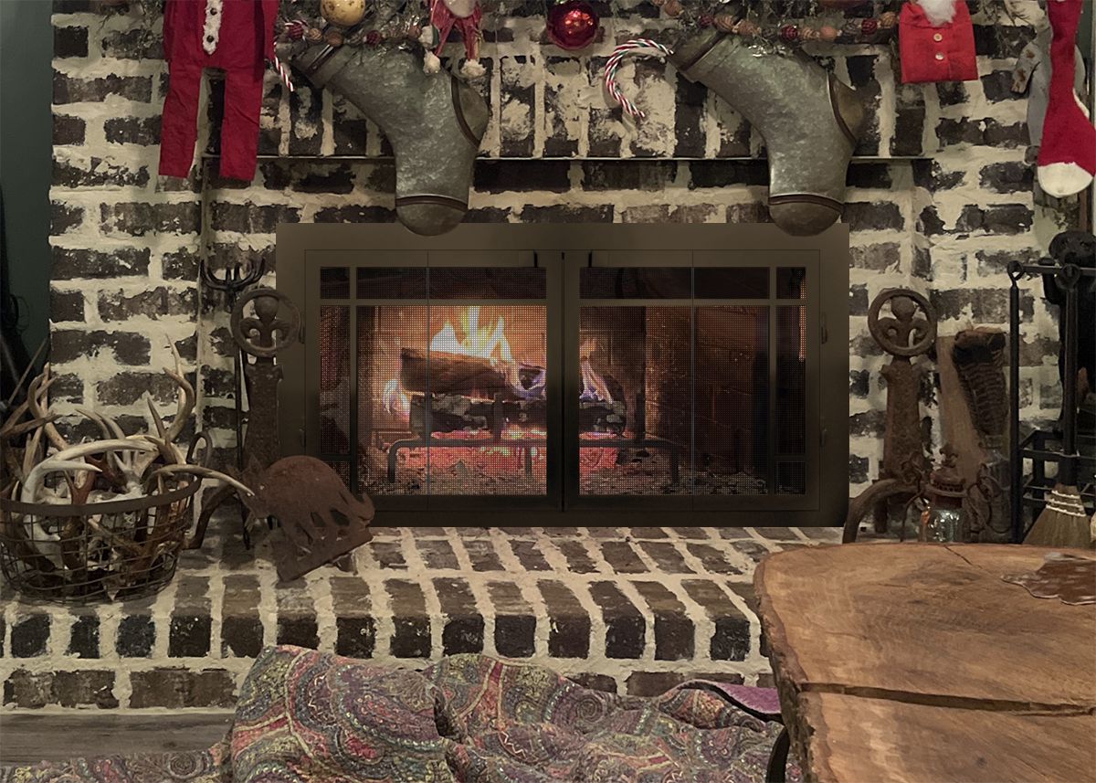 If you are planning on burning anything in your fireplace, you need to have mesh behind the glass so you can burn a fire with the doors open. You can chooe between gate mesh backup doors and sliding mesh curtains. Functionally, gate mesh performs the best as the wire has smaller holes that sparks cannot get through. Aesthetically, mesh curtains may be preferred because they do not have a vertical center frame that obstructs the view of the fire. When you are not using the fire or you want a complete unobstructed view, they do not stick out like gate mesh doors when they are opened.