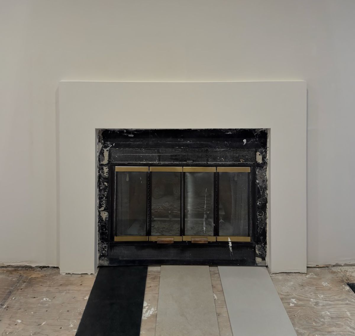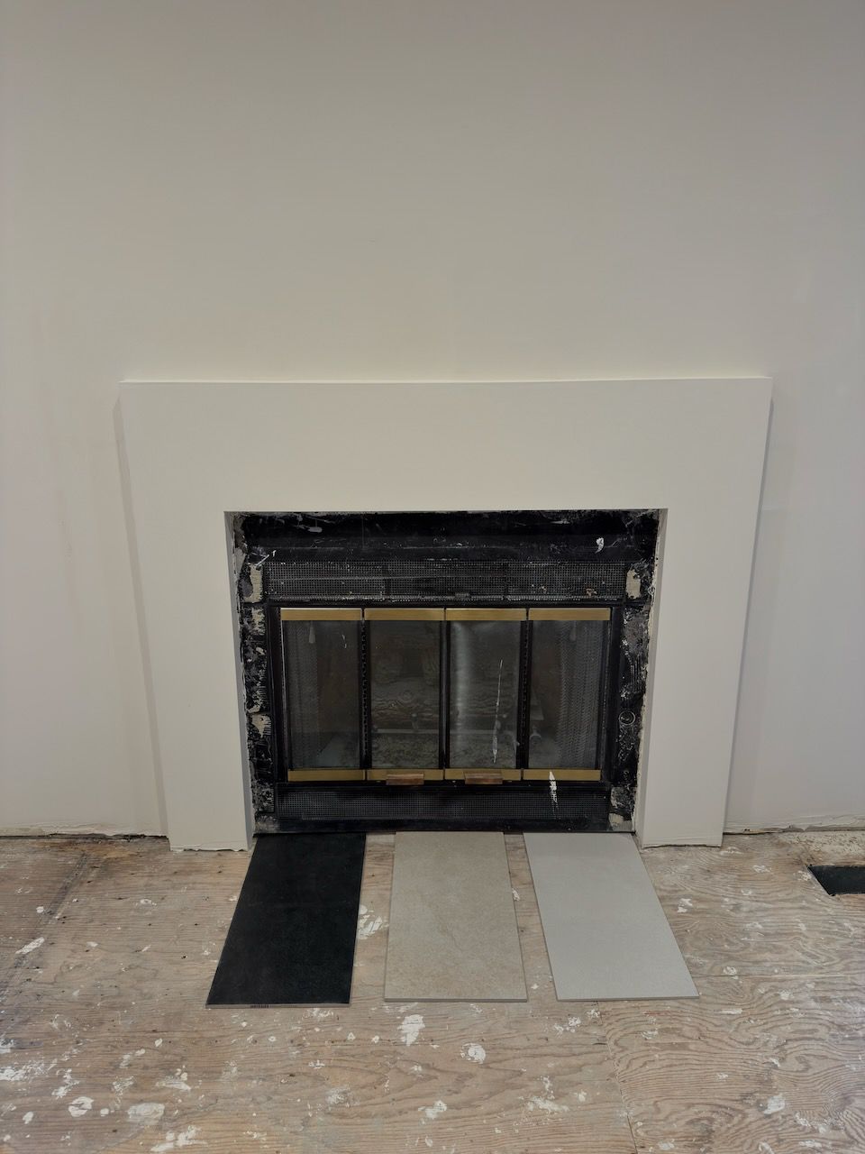 Customer Comments: Remodeling and want to make this fireplace look nicer. I believe it's a gas log set inside of an old wood burnin fireplace. I'd like to cover up the face but leave the vents open top and bottom in case that's necessary, as well as replace the doors (not sure if you do that) - Going for a modern minimal aesthetic, planning to put a white oak mantel on top and black tile hearth in front. The doors are about 36" wide. House is stripped currently.