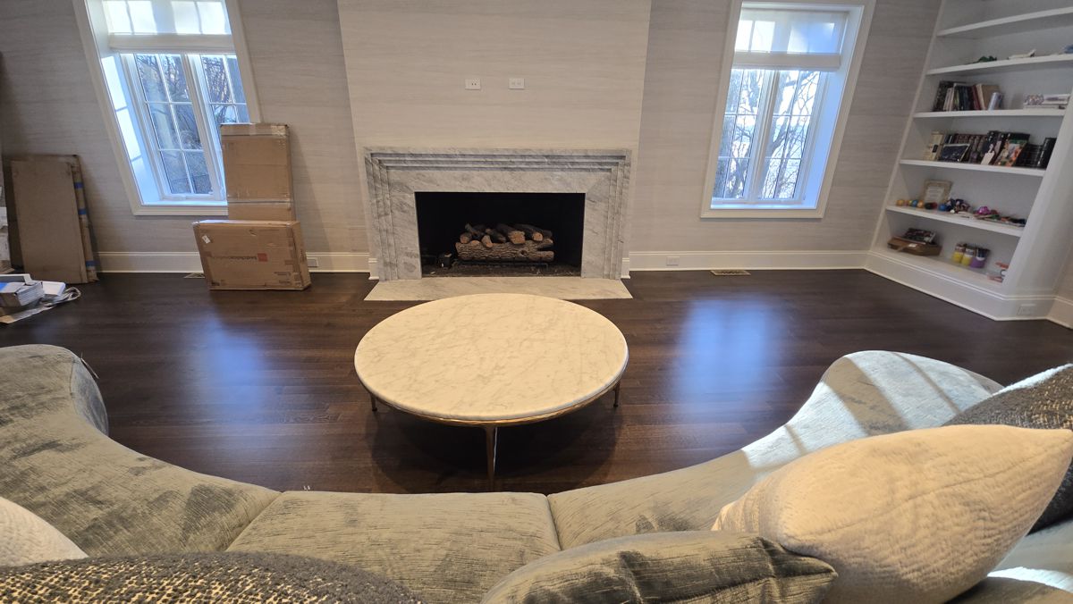 Photo #2: With your back to the fireplace, take a picture looking straight out into the room so we can see the decor directly in front of the fireplace.