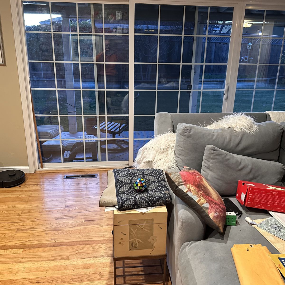 Photo #2: With your back to the fireplace, take a picture looking straight out into the room so we can see the decor directly in front of the fireplace.