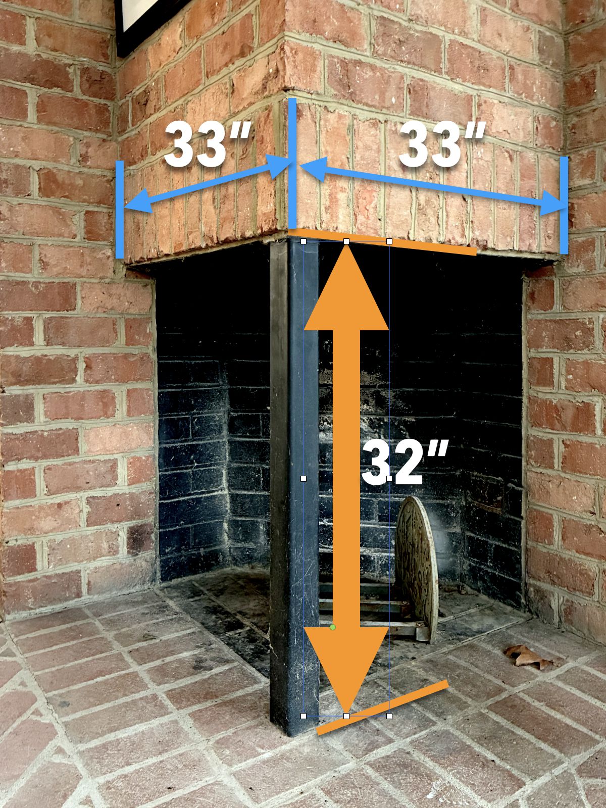 Customer Comments: This corner fireplace is situated at a 45ยบ angle in the room. I think the best solution is 2 individual free-standing screens. When adding wood... I could then choose to move which ever one would be most convenient. The dimensions are on the first photo
