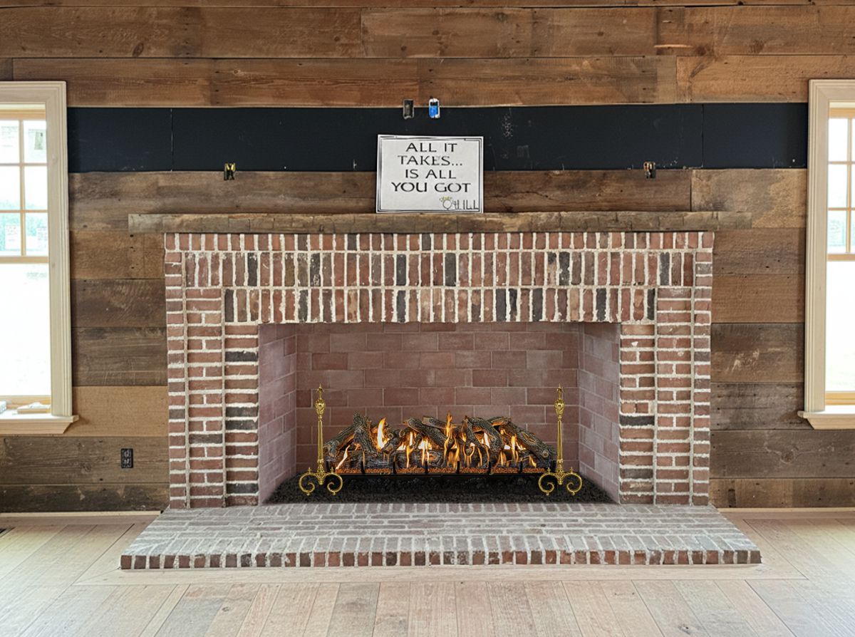 Our Comments: The Peterson G52 burner is only available in sizes up to 30". Once gas logs start getting larger than this, the flame height gets lower due to the amount of BTUs required to maintain a taller flame for wider burners. The maximum BTUs allowed for a gas log indoors is typically 250K. When that amount of BTUs is spread over a 60" wide area, the flames will barely clear the top of the logs, unless the logs are shorter or the burner is specially designed. Grand Canyon gas logs overcomes this issue with their uniquely designed JUMBO burner system where there is a burner raised in between the bottom logs that raises the flames above the logs. The logs are also nearly 50% larger in diamater than most other gas logs in this size. These are very high-end and quite expensive. They also offer a more affordable alternative with logs that are shorter so the flames still come up above the logs. Large log sets like these are almost always accompanied with andirons to help fill the space and create a finished look. Here are some examples.