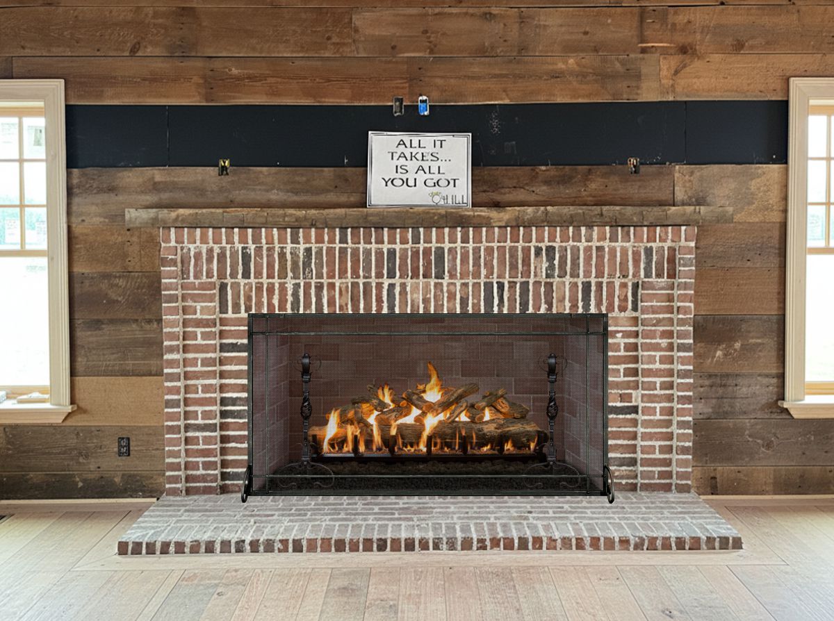 If you are planning on burning anything in your fireplace, you need to have mesh behind the glass so you can burn a fire with the doors open. You can chooe between gate mesh backup doors and sliding mesh curtains. Functionally, gate mesh performs the best as the wire has smaller holes that sparks cannot get through. Aesthetically, mesh curtains may be preferred because they do not have a vertical center frame that obstructs the view of the fire. When you are not using the fire or you want a complete unobstructed view, they do not stick out like gate mesh doors when they are opened.
