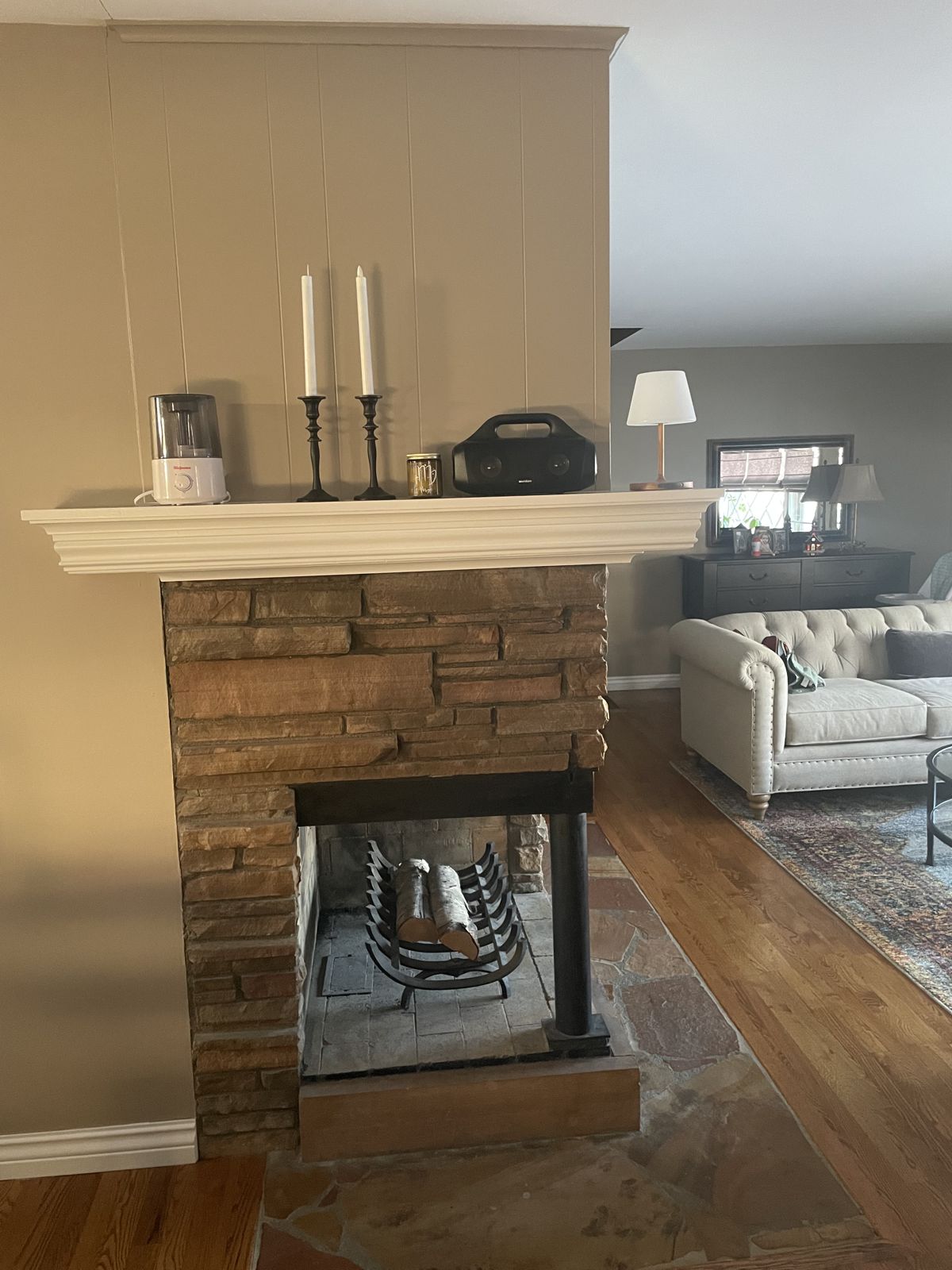 Photo #2: With your back to the fireplace, take a picture looking straight out into the room so we can see the decor directly in front of the fireplace.