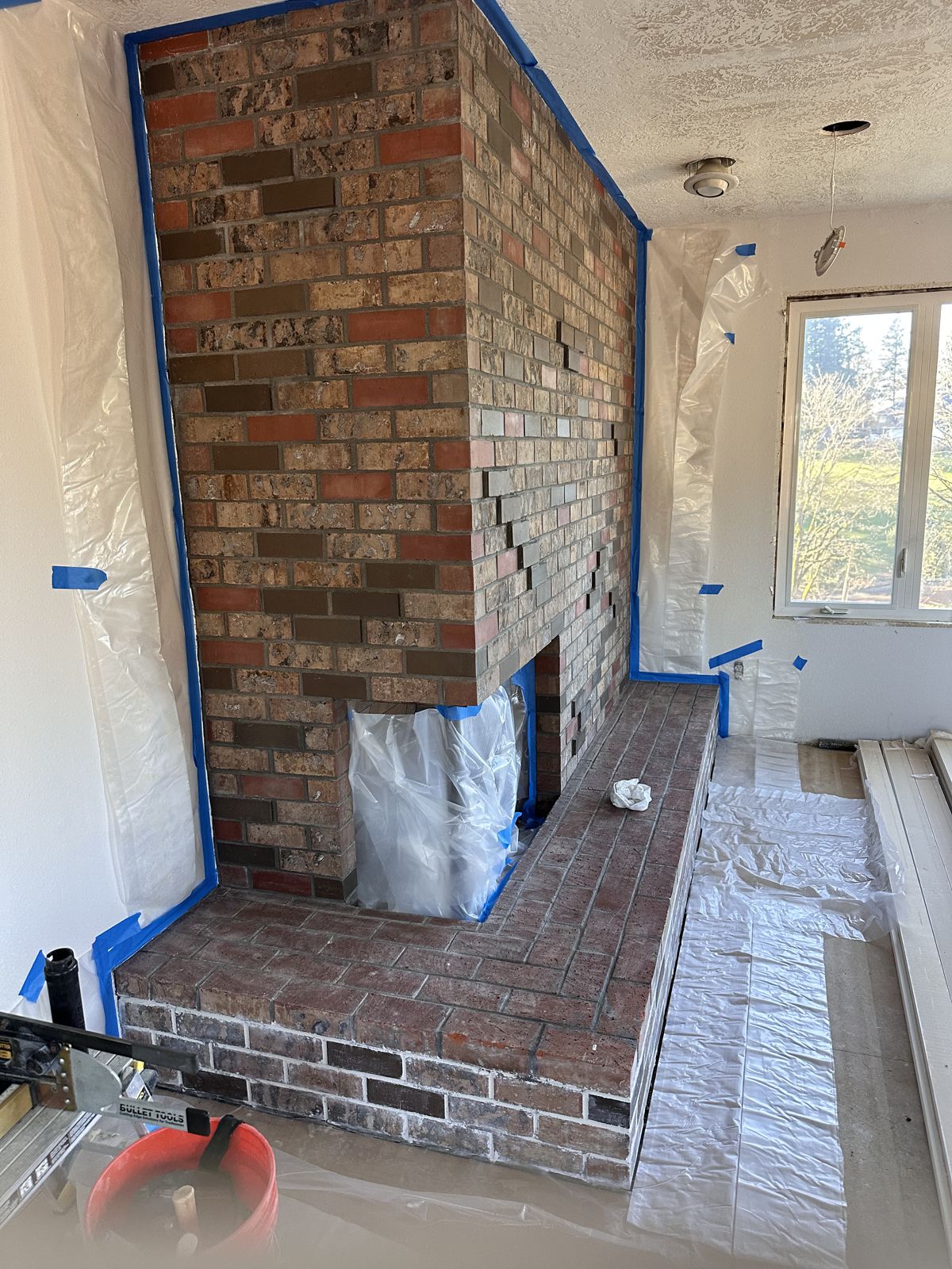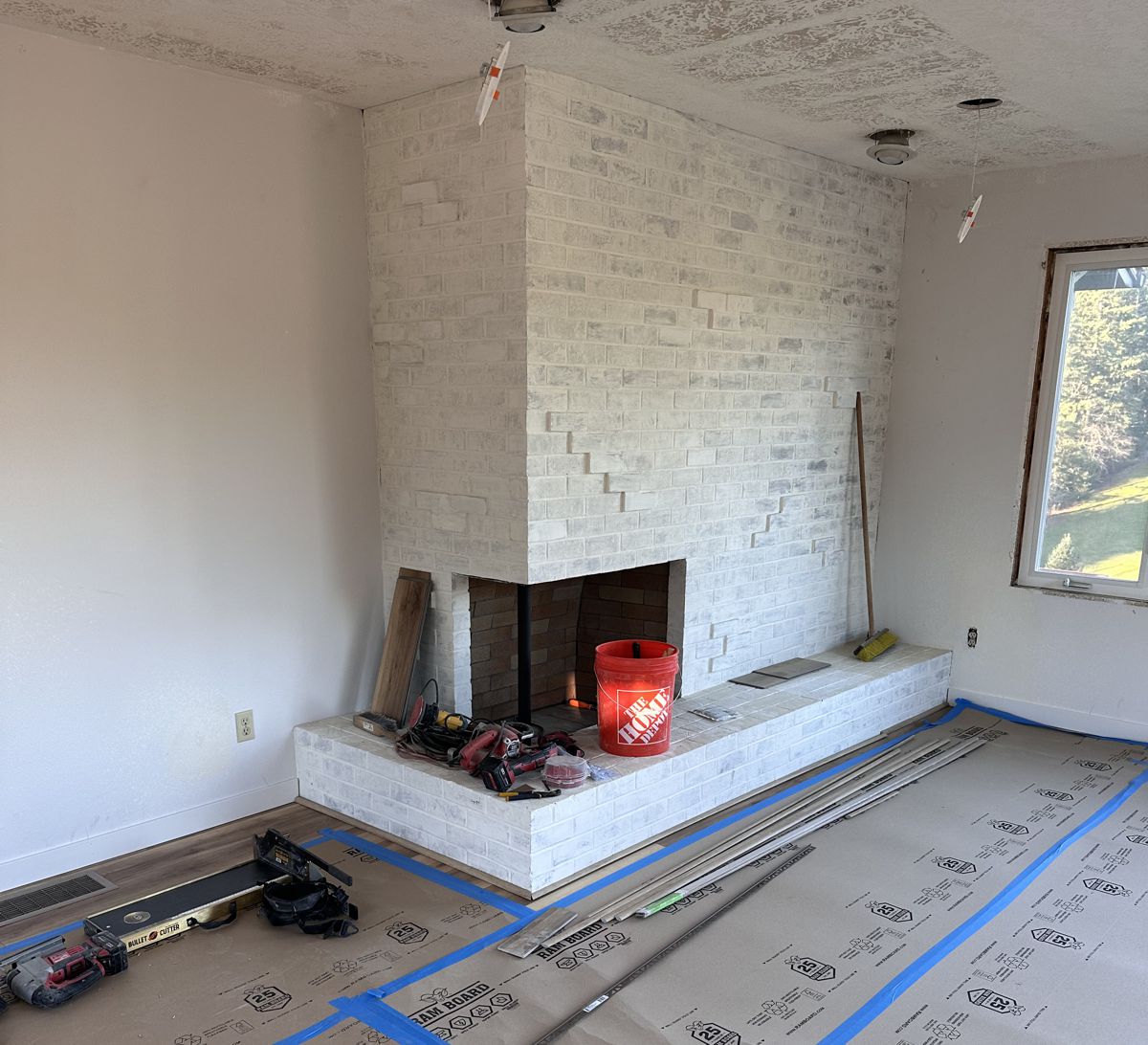 Customer Comments: We have a 70’s corner fireplace that does has a hearth. Looking for a screen or doors to protect from sparks. We don’t have the room furnished yet but beyond hearth will be lvp flooring - last photo was before limewash. Probably matte black finishes.