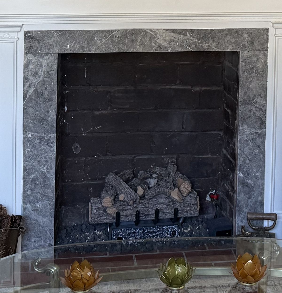 You must open the glass doors when buring gas logs.