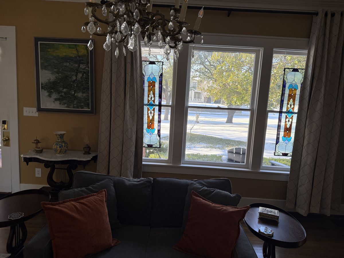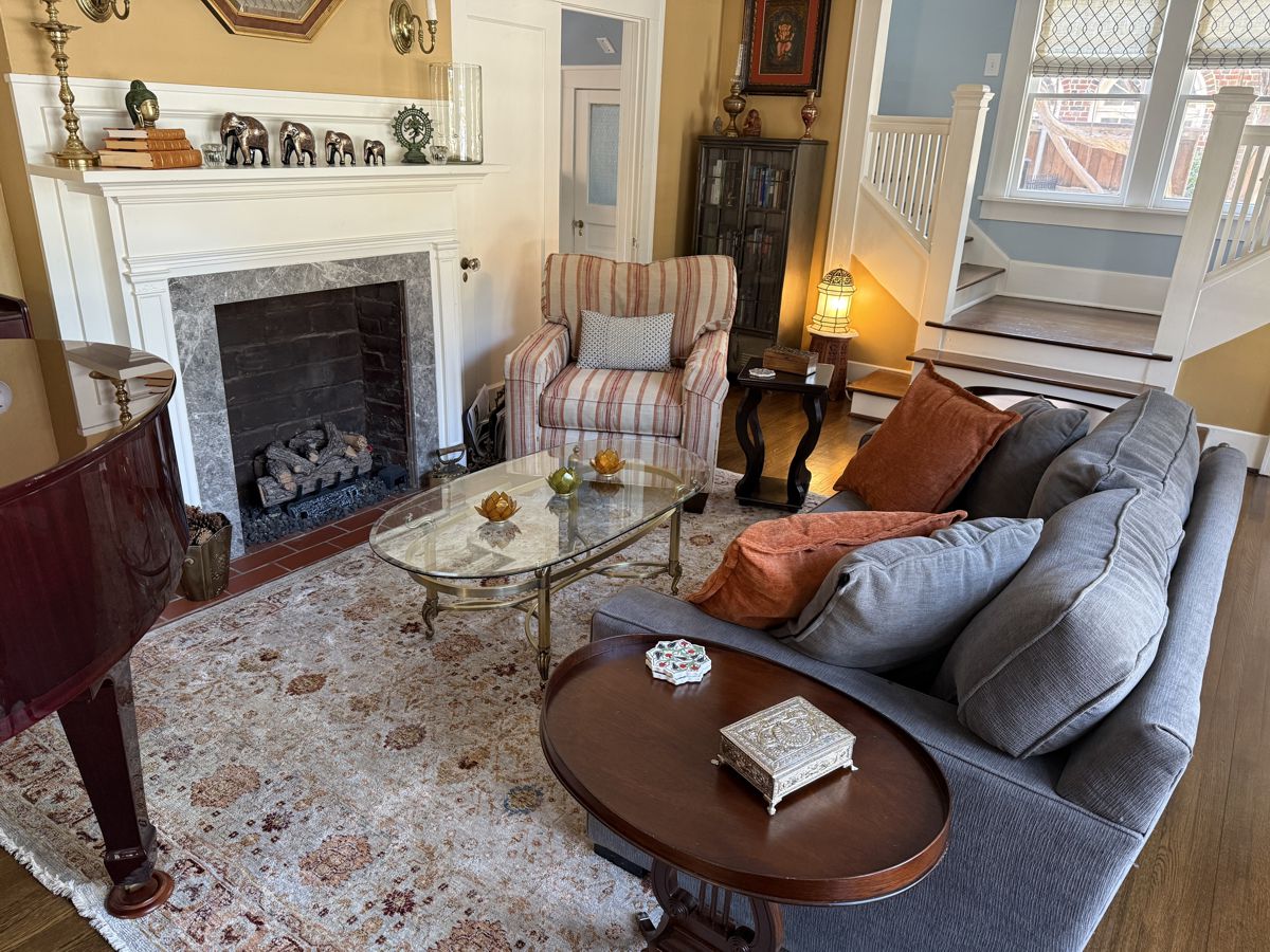 Photo #2: With your back to the fireplace, take a picture looking straight out into the room so we can see the decor directly in front of the fireplace.