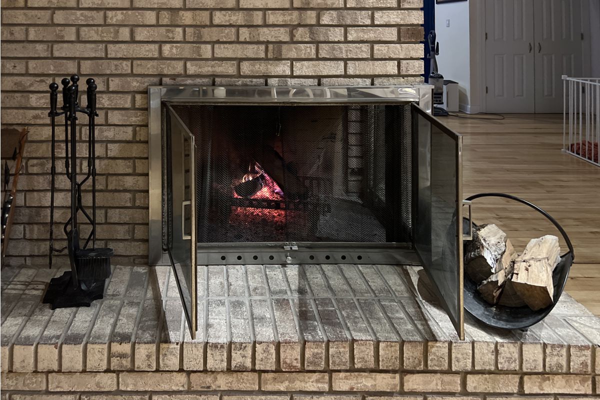 If you are planning on burning anything in your fireplace, you need to have mesh behind the glass so you can burn a fire with the doors open. You can chooe between gate mesh backup doors and sliding mesh curtains. Functionally, gate mesh performs the best as the wire has smaller holes that sparks cannot get through. Aesthetically, mesh curtains may be preferred because they do not have a vertical center frame that obstructs the view of the fire. When you are not using the fire or you want a complete unobstructed view, they do not stick out like gate mesh doors when they are opened.