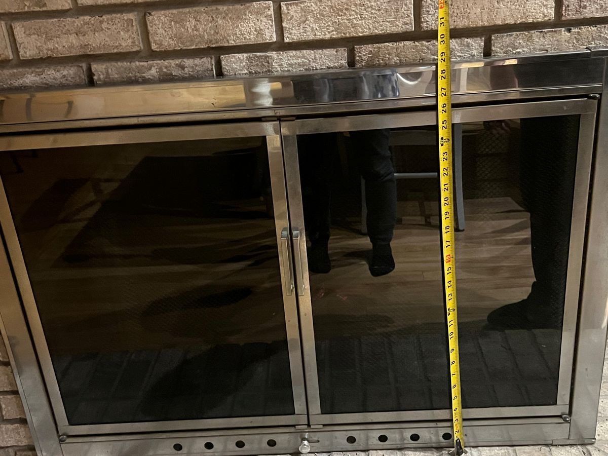 Option #1: Design Specialties Brookfield Aluminum Bifold Fireplace Door in Black with Tempered Glass (Only) and Gate Mesh Backup Doors.