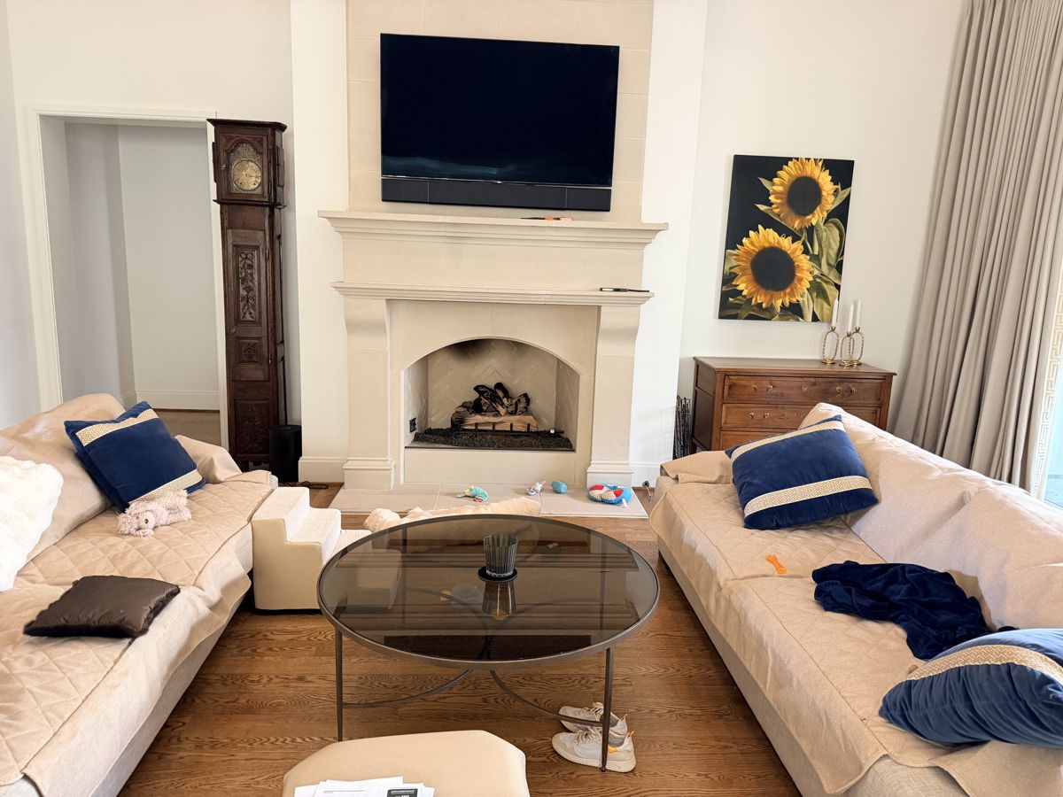 Photo #2: With your back to the fireplace, take a picture looking straight out into the room so we can see the decor directly in front of the fireplace.
