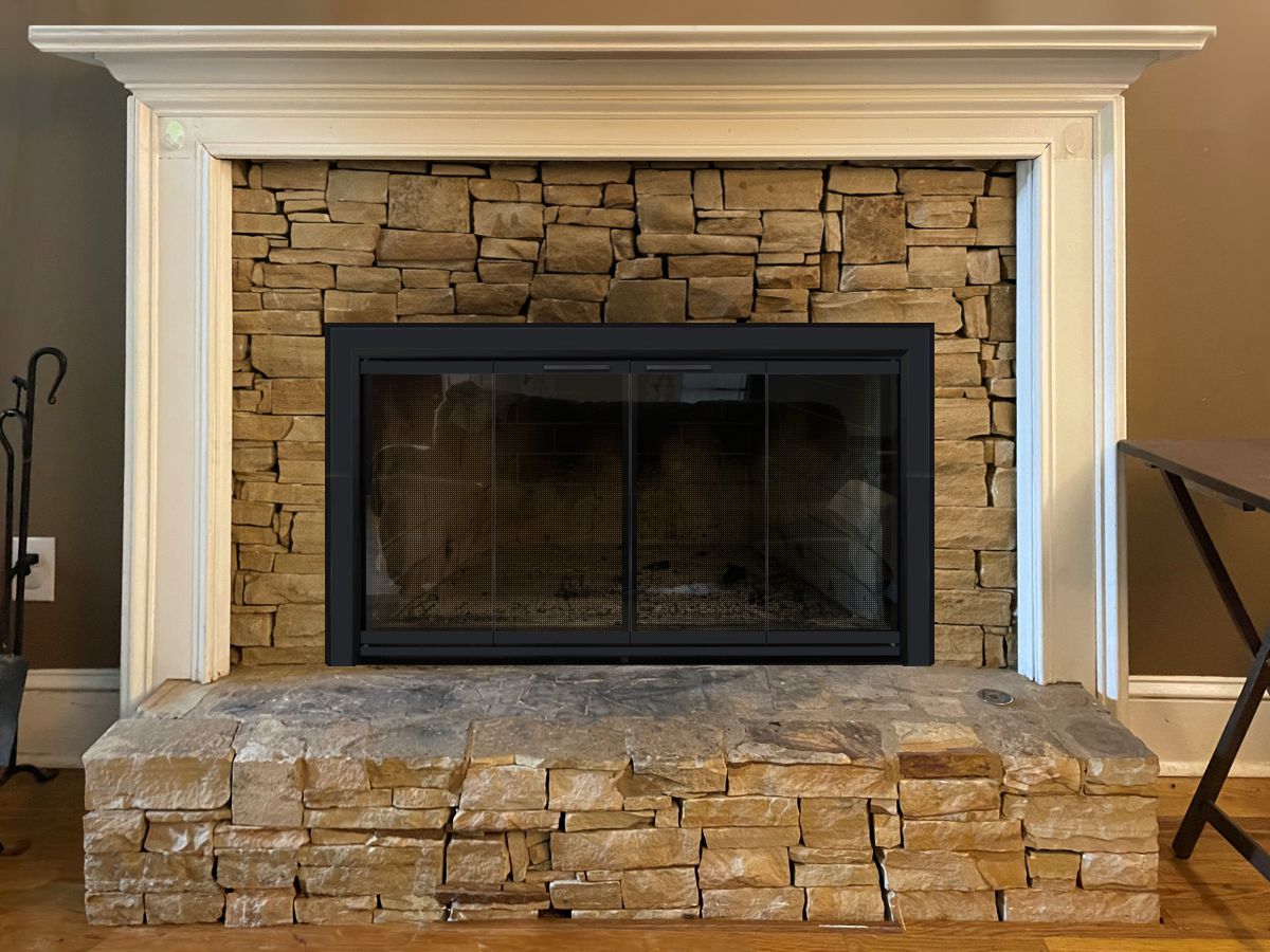 Scale & Finish Disclaimer: Mockups shown on this site are not necessarily to scale and are meant to help you choose the style of your screen or door. The appearance of finishes represented may vary between digital monitors and screens. I do my best to recommend finishes that I believe will blend with your decor and flatter your fireplace. You can view finish options here: