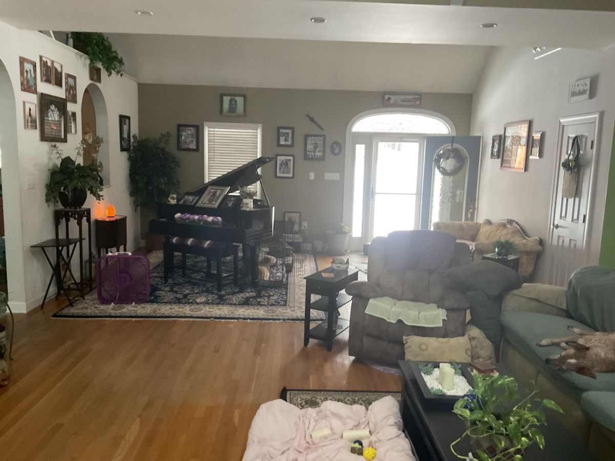 Photo #2: With your back to the fireplace, take a picture looking straight out into the room so we can see the decor directly in front of the fireplace.