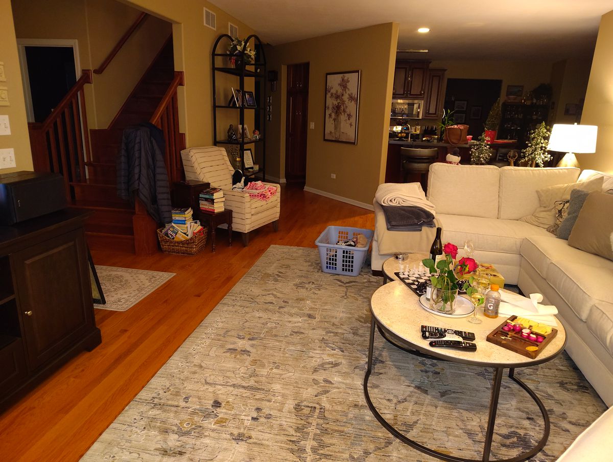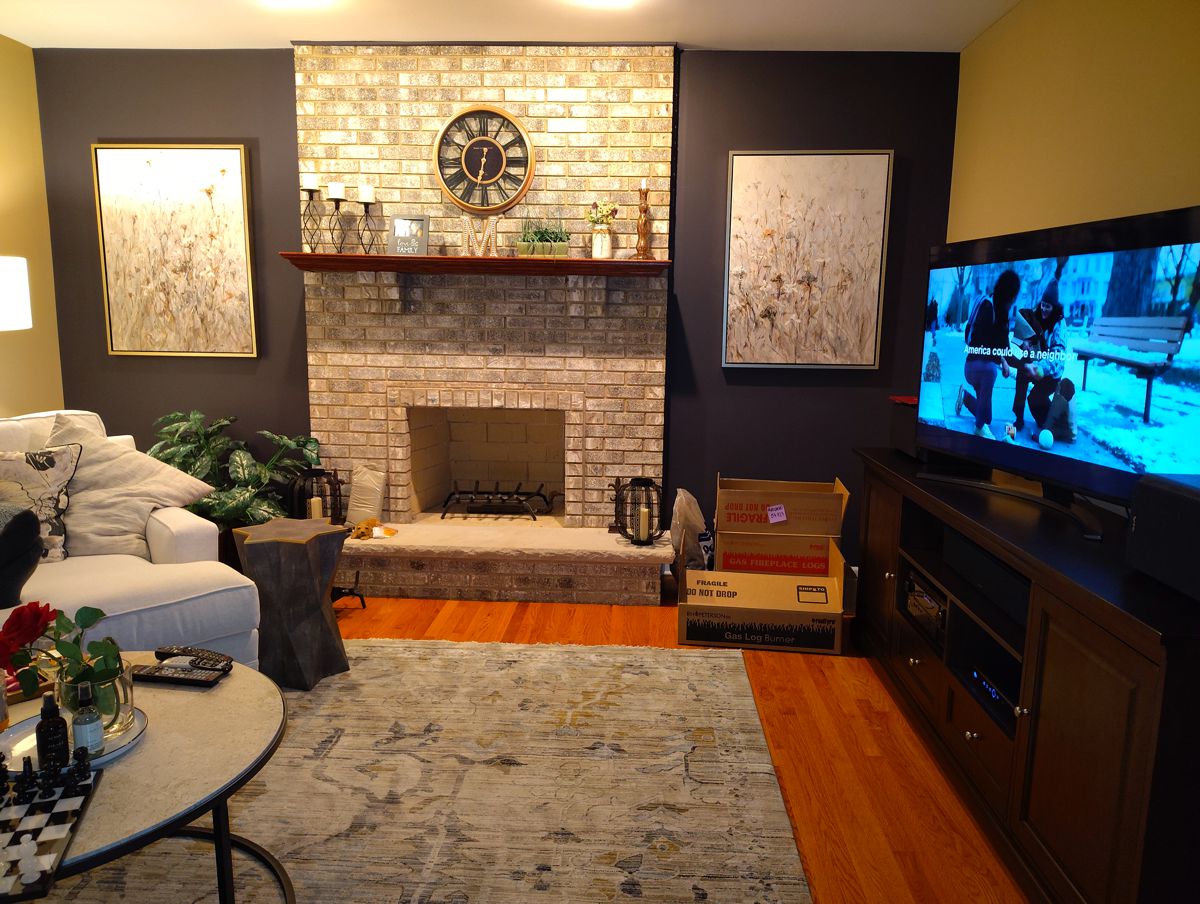 Photo #2: With your back to the fireplace, take a picture looking straight out into the room so we can see the decor directly in front of the fireplace.