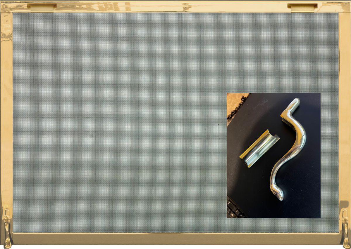 These screens are laser cut from steel and then brass plated. This gives us the ability to add the decorative louver at the bottom and arched top that you requested. These screens must be lacquered to deter rust and can be made in polished brass, satin brass, antique brass or powder coat finishes.