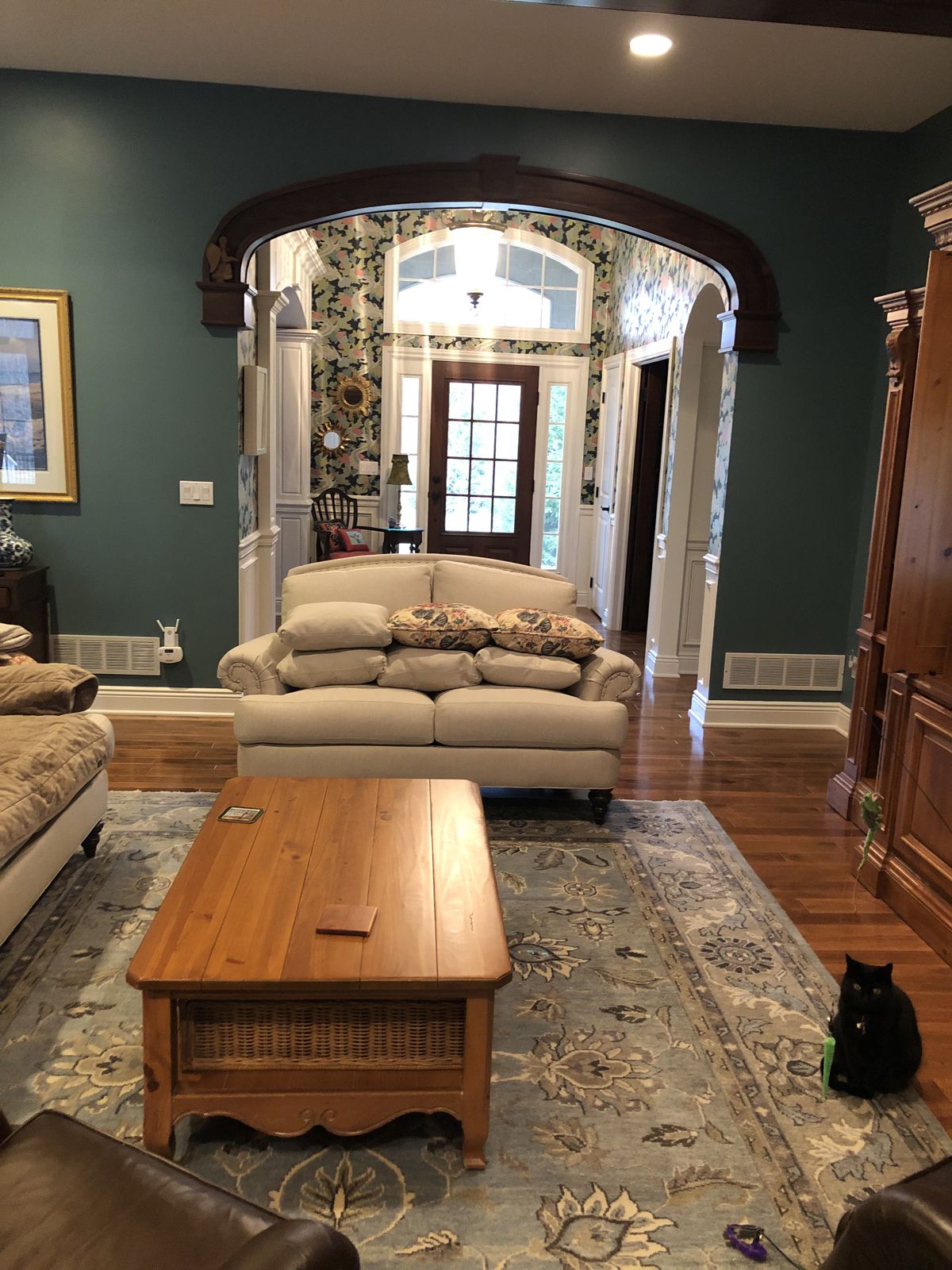 Photo #2: With your back to the fireplace, take a picture looking straight out into the room so we can see the decor directly in front of the fireplace.