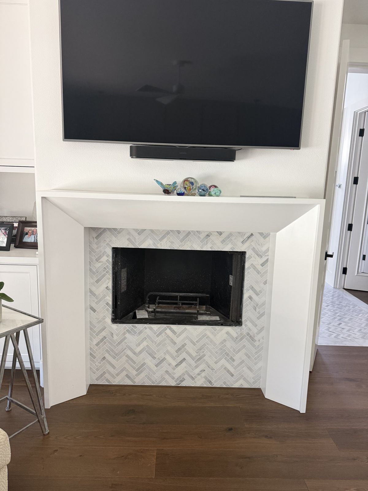 Photo #1: With your camera sideways, take a picture directly in front of the fireplace from far enough away to see the entire fireplace floor to ceiling like this.