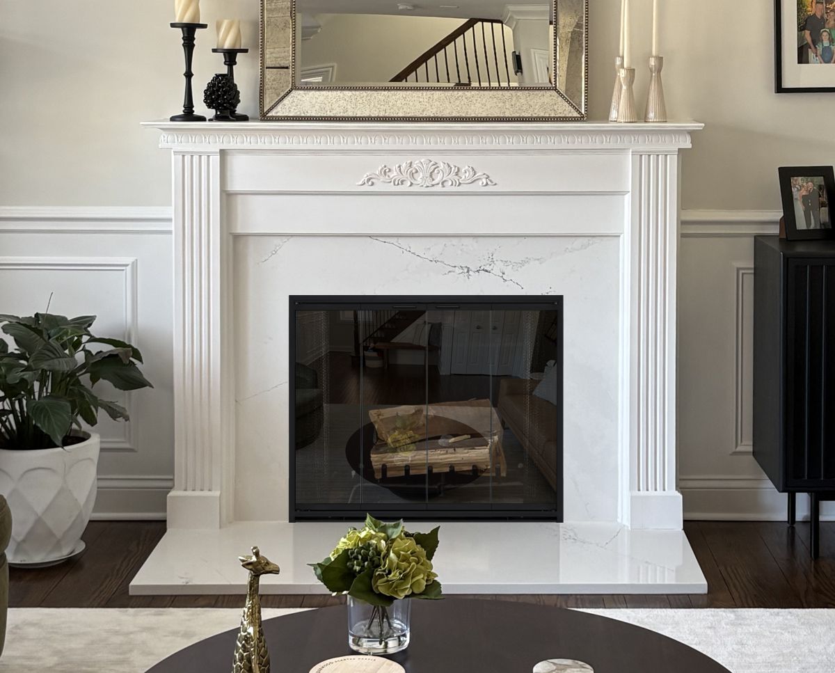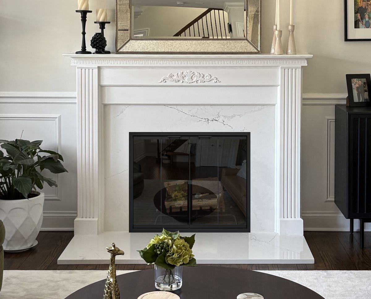 Scale & Finish Disclaimer: Mockups shown on this site are not necessarily to scale and are meant to help you choose the style of your screen or door. The appearance of finishes represented may vary between digital monitors and screens. I do my best to recommend finishes that I believe will blend with your decor and flatter your fireplace. You can view finish options here: