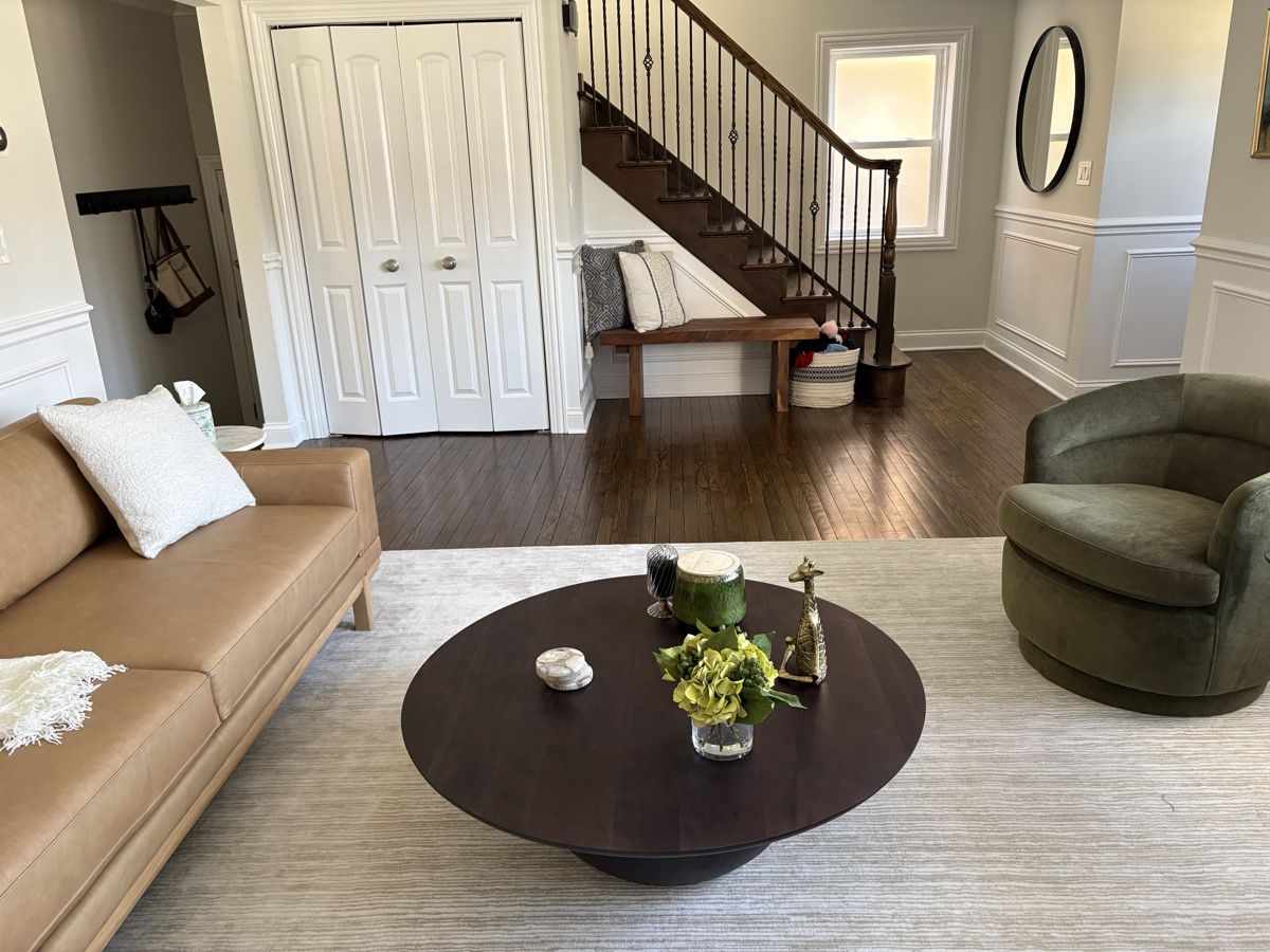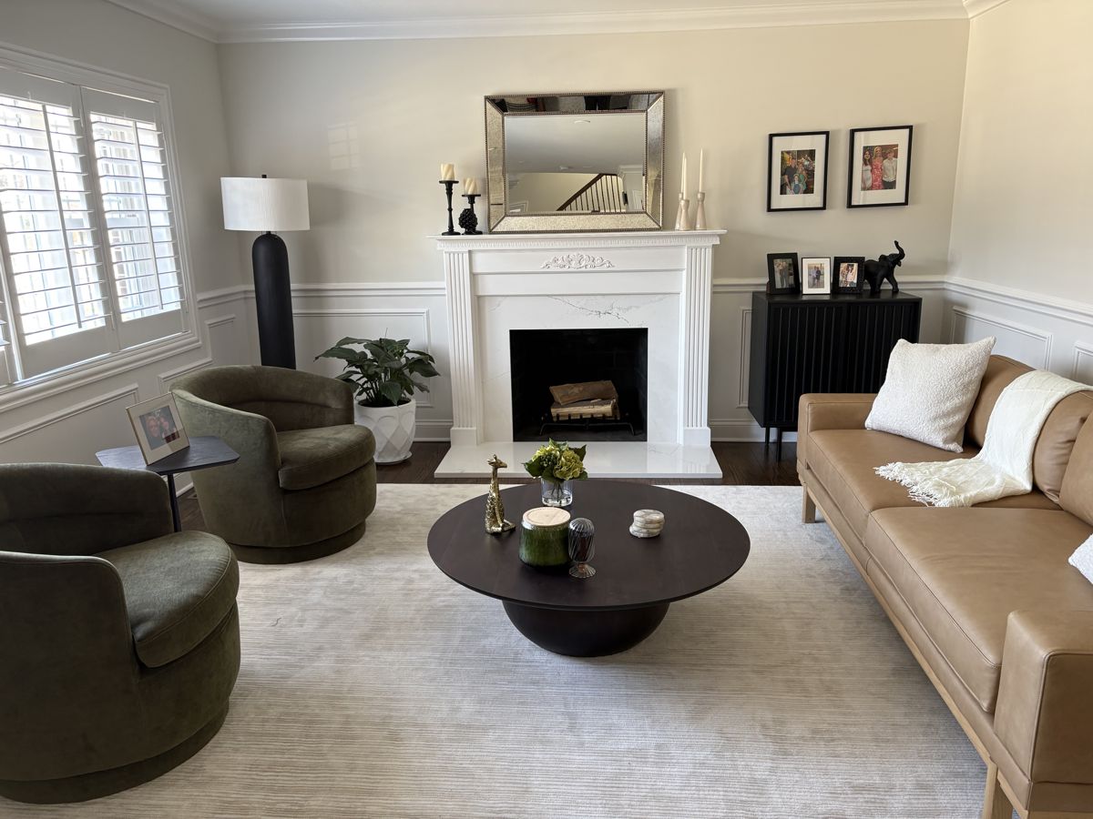 Photo #2: With your back to the fireplace, take a picture looking straight out into the room so we can see the decor directly in front of the fireplace.