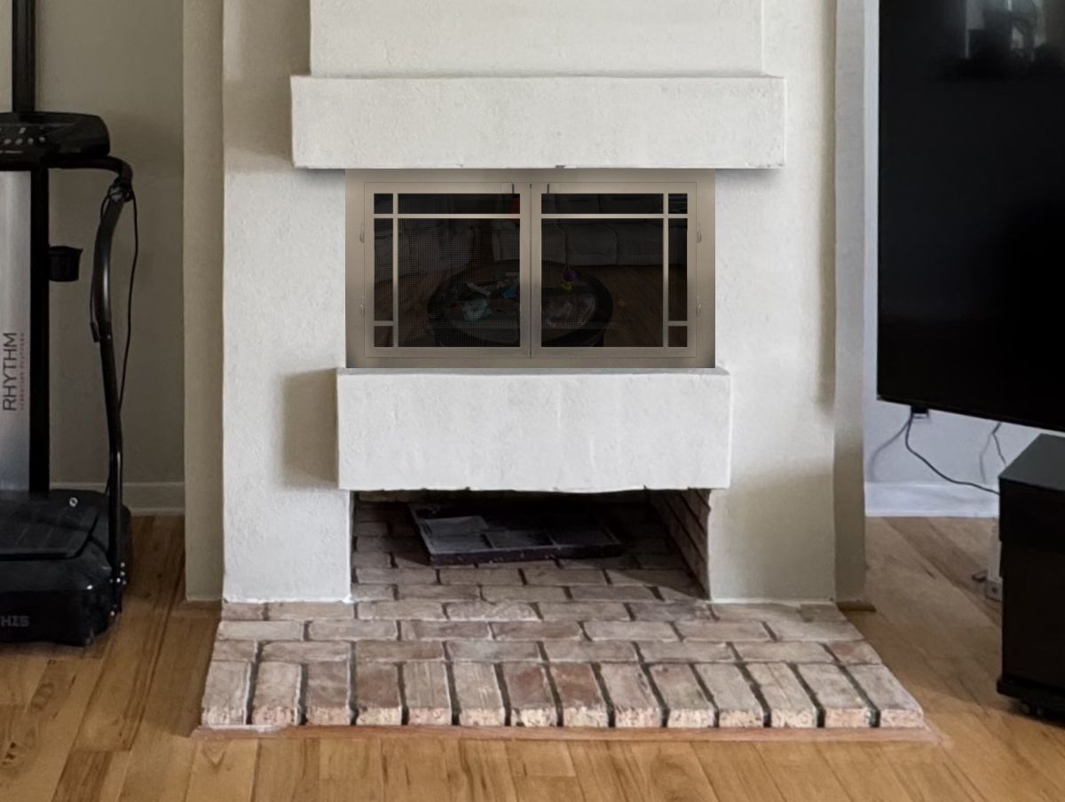 Scale & Finish Disclaimer: Mockups shown on this site are not necessarily to scale and are meant to help you choose the style of your screen or door. The appearance of finishes represented may vary between digital monitors and screens. I do my best to recommend finishes that I believe will blend with your decor and flatter your fireplace. You can view finish options here: