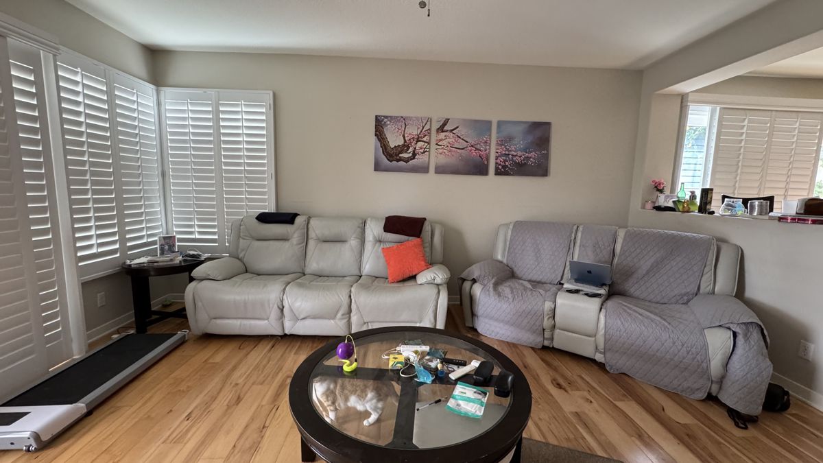 Photo #2: With your back to the fireplace, take a picture looking straight out into the room so we can see the decor directly in front of the fireplace.