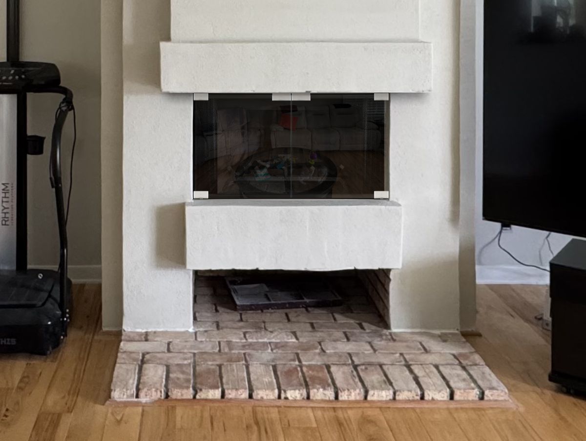 If you are planning on burning anything in your fireplace, you need to have mesh behind the glass so you can burn a fire with the doors open. You can chooe between gate mesh backup doors and sliding mesh curtains. Functionally, gate mesh performs the best as the wire has smaller holes that sparks cannot get through. Aesthetically, mesh curtains may be preferred because they do not have a vertical center frame that obstructs the view of the fire. When you are not using the fire or you want a complete unobstructed view, they do not stick out like gate mesh doors when they are opened.