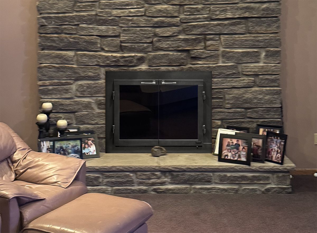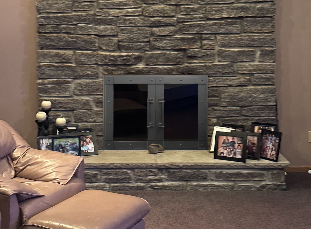 Scale & Finish Disclaimer: Mockups shown on this site are not necessarily to scale and are meant to help you choose the style of your screen or door. The appearance of finishes represented may vary between digital monitors and screens. I do my best to recommend finishes that I believe will blend with your decor and flatter your fireplace. You can view finish options here: