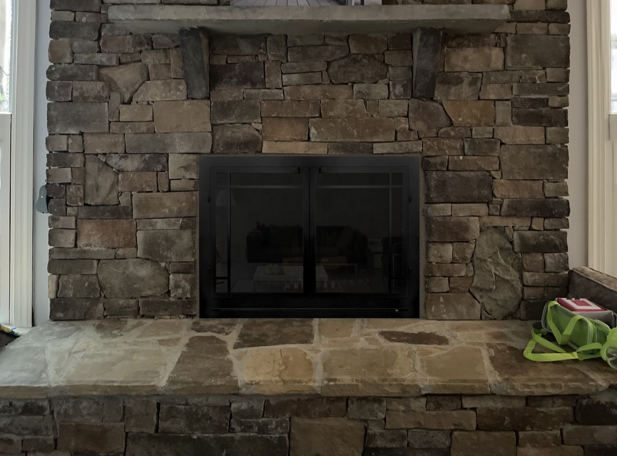 Customer Comments: We love our wood burnt fireplace, however after burning it sometimes smells like a campfire in the house, and I’m hoping some glass doors would not only be safer but also prevent some of the smell in the house from occurring. Realize one challenge we have with putting doors in is the sides are not exactly flush or even because of the brick structure I can fill that in if needed. Anyways, would love to hear what we might be able to do. Doesn’t need to be complex maybe something simple look forward to the mock up.