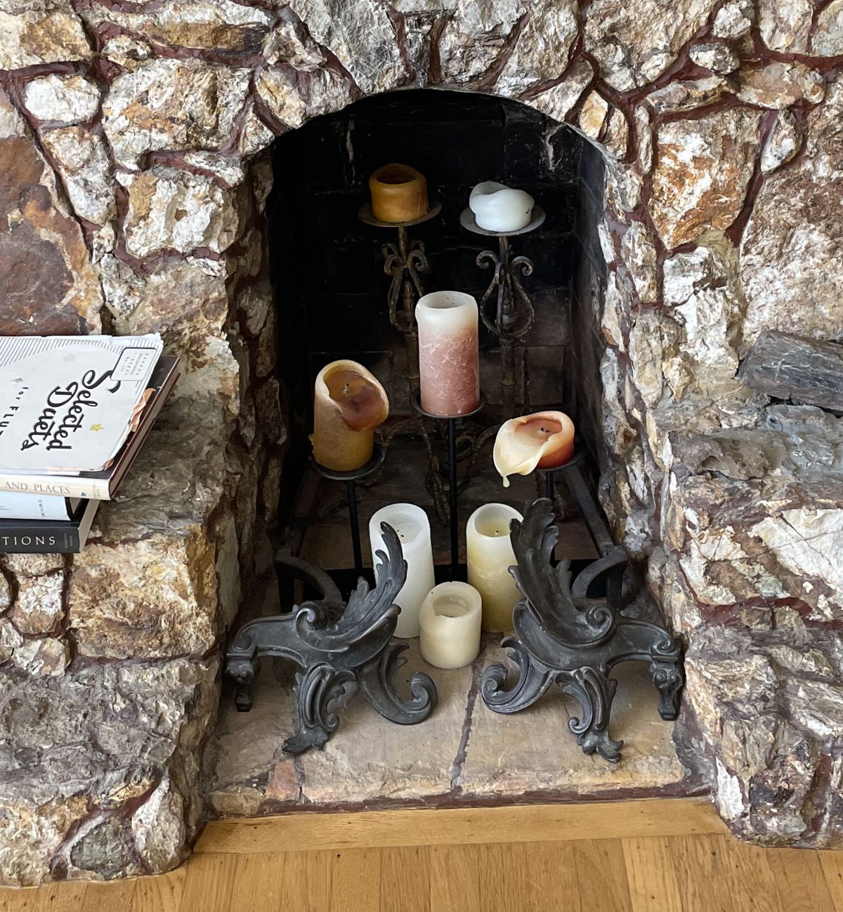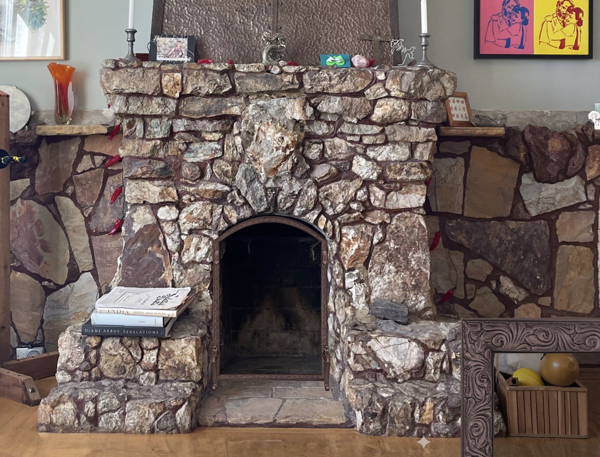 Our Comments: Due to the irregularity of the stones and the two seats next to the opening, the screen must be made to fit inside the fireplace opening.