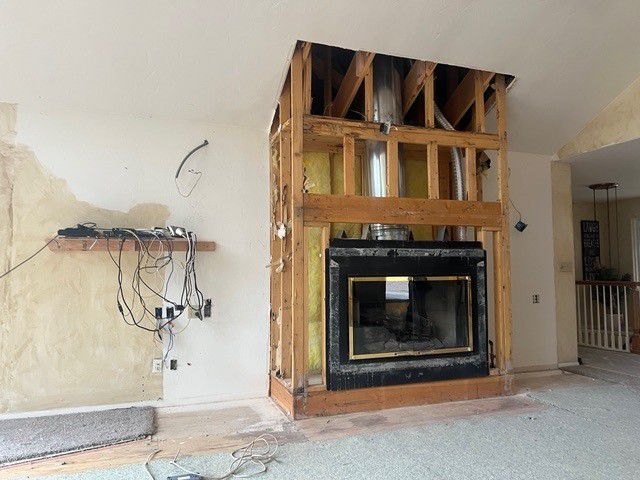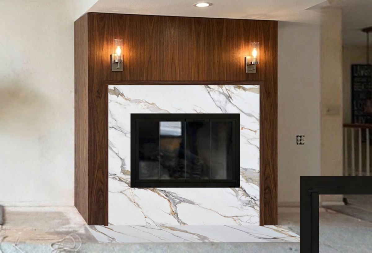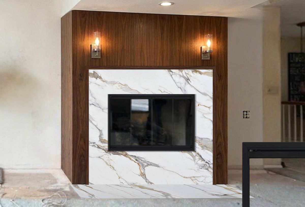 Customer Comments: Would like to lower this fireplace and move 2 feet to the left and replace the doors. We will use quartz around the face of the fireplace, and six inches above the top. The fireplace is a gas log unit. No natural wood is burned in this unit. The fireplace design we are looking at is something along the lines of the photo (see inspiration photo below). The measurements are. 47 by 26 1/4. Walnut wood will be used for the finish.