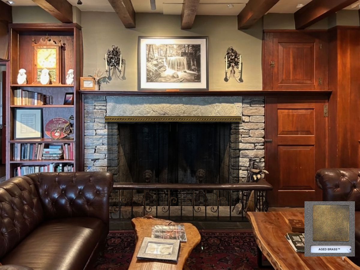 Option #4: Stone Manufacturing C92 Solid Brass Outside Mount Mesh Curtains with Track and Roller System and #33 Rope Casting Trin in Aged Brass.