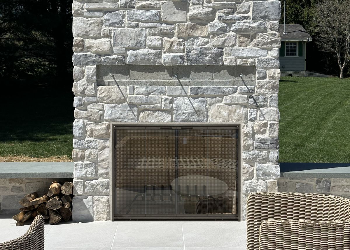 Our Comments: Here are some excellent choices for doors that can be made for this outdoor fireplace. I am showing all of these as glass doors with gate mesh backup doors. If you do not want glass, they can all be made with just the gate mesh. The advantage of glass is being able to close the doors when it gets windy to help prevent smoke and ashes from blowing around. Closing the doors while the fire is burning requires ceramic glass, so all of these doors include ceramic glass as an option.