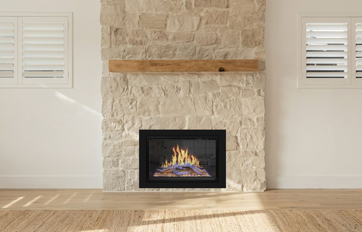 The Redstone is the mainstream electric fireplace from Modern Flames with a decent flame effect that an a grade above the models sold at home centers. The remote control is packed full of features that allow you to adjust the colors and flame effect. It features a 5,000 BTU heater, but does not have a crackling sound.