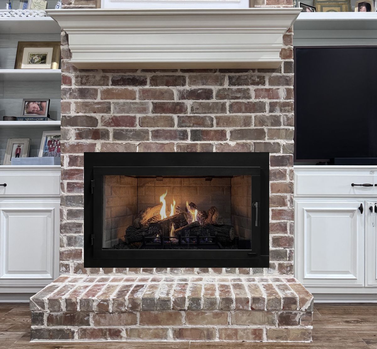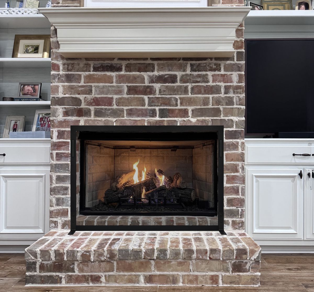 If you are planning on burning anything in your fireplace, you need to have mesh behind the glass so you can burn a fire with the doors open. You can chooe between gate mesh backup doors and sliding mesh curtains. Functionally, gate mesh performs the best as the wire has smaller holes that sparks cannot get through. Aesthetically, mesh curtains may be preferred because they do not have a vertical center frame that obstructs the view of the fire. When you are not using the fire or you want a complete unobstructed view, they do not stick out like gate mesh doors when they are opened.