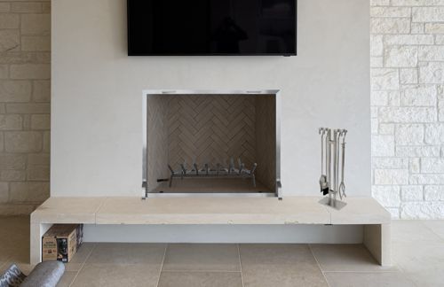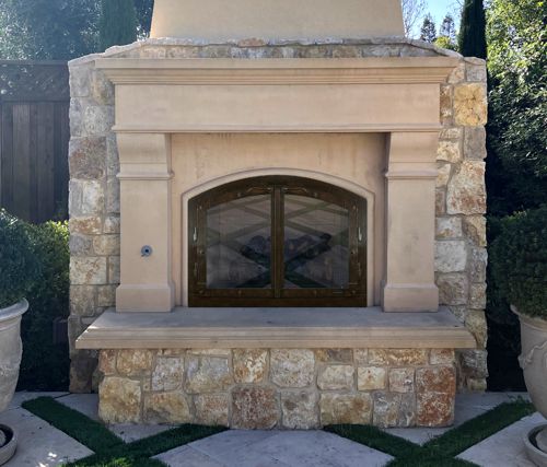 Glass doors are a fantastic treatment for outdoor fireplaces. If you have doors with ceramic glass, you can close them when it gets windy to prevent smoke and ashes blowing around. Plus, they help keep critters out of the fireplace.
