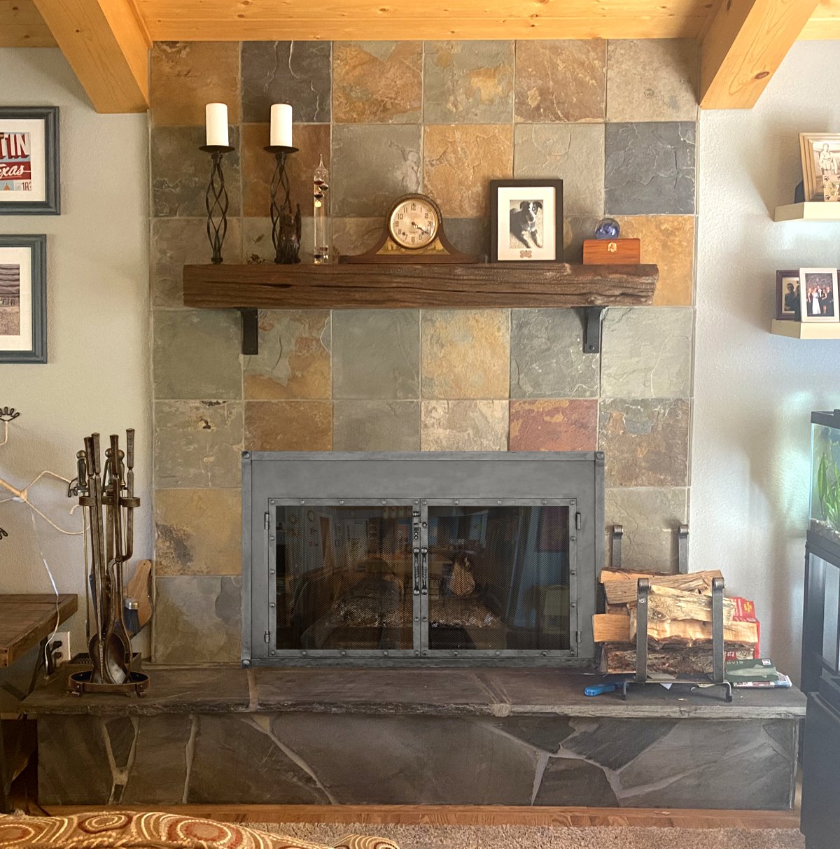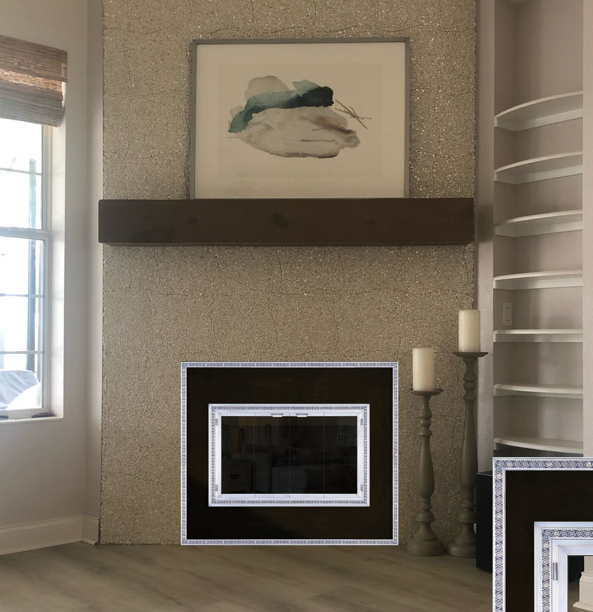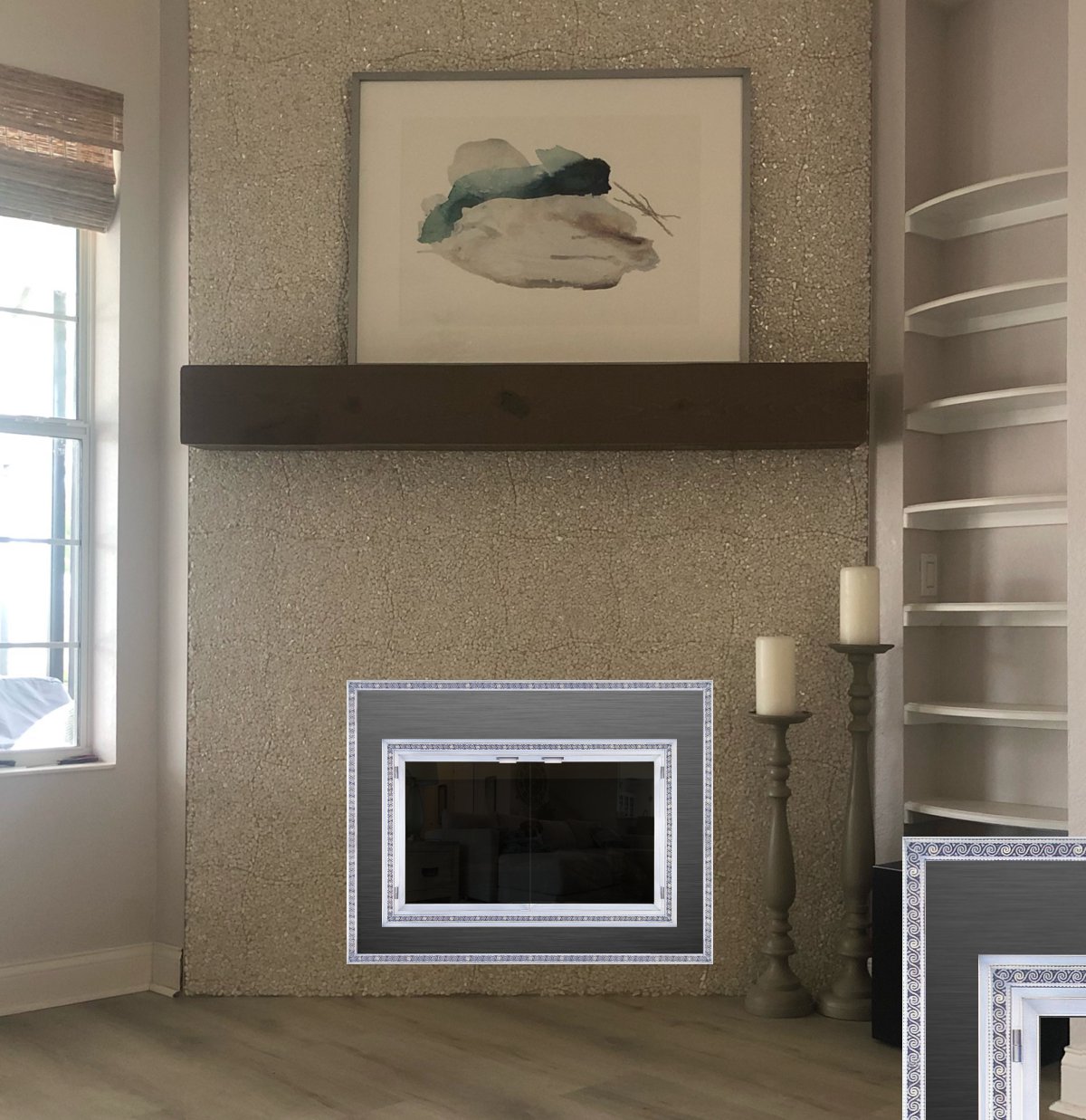 I design custom fireplace surrounds for Wood, Gas and Electric fireplace inserts. If want a surround that is more decorative, or your opening has an unusual size or shape and the surrounds that are available for your insert will not work, I can have a custom surround made that works. Send me pictures of your fireplace and I will create some mockups and show you how various options will look on your fireplace like the examples below. To get started: Fill Out My Contact Form Here!